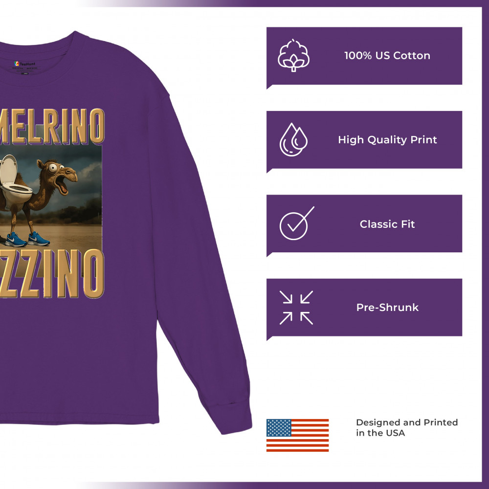 Camelrino Tazzino delivers a double flush of internet madness. With a toilet body, running shoes, and a camel's face frozen in horror, this meme mashup blends cursed-core design, viral TikTok humor, surreal animal chaos, and Gen Z meme fashion. Built for weirdcore lovers and internet irony addicts.