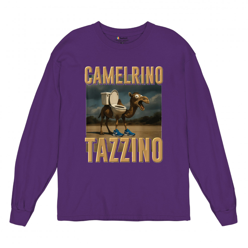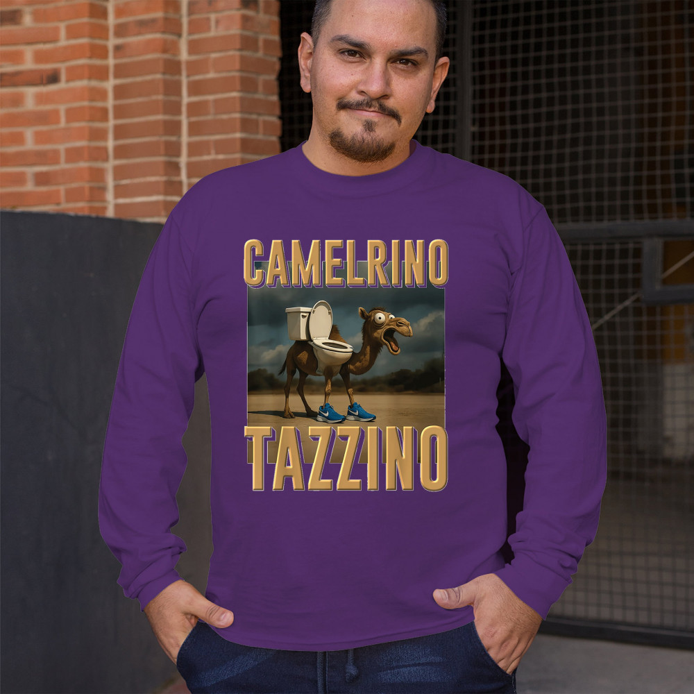 Camelrino Tazzino fuses toilet-core fashion, cursed camel chaos, TikTok meme humor, surreal animal design, and Gen Z absurdity.