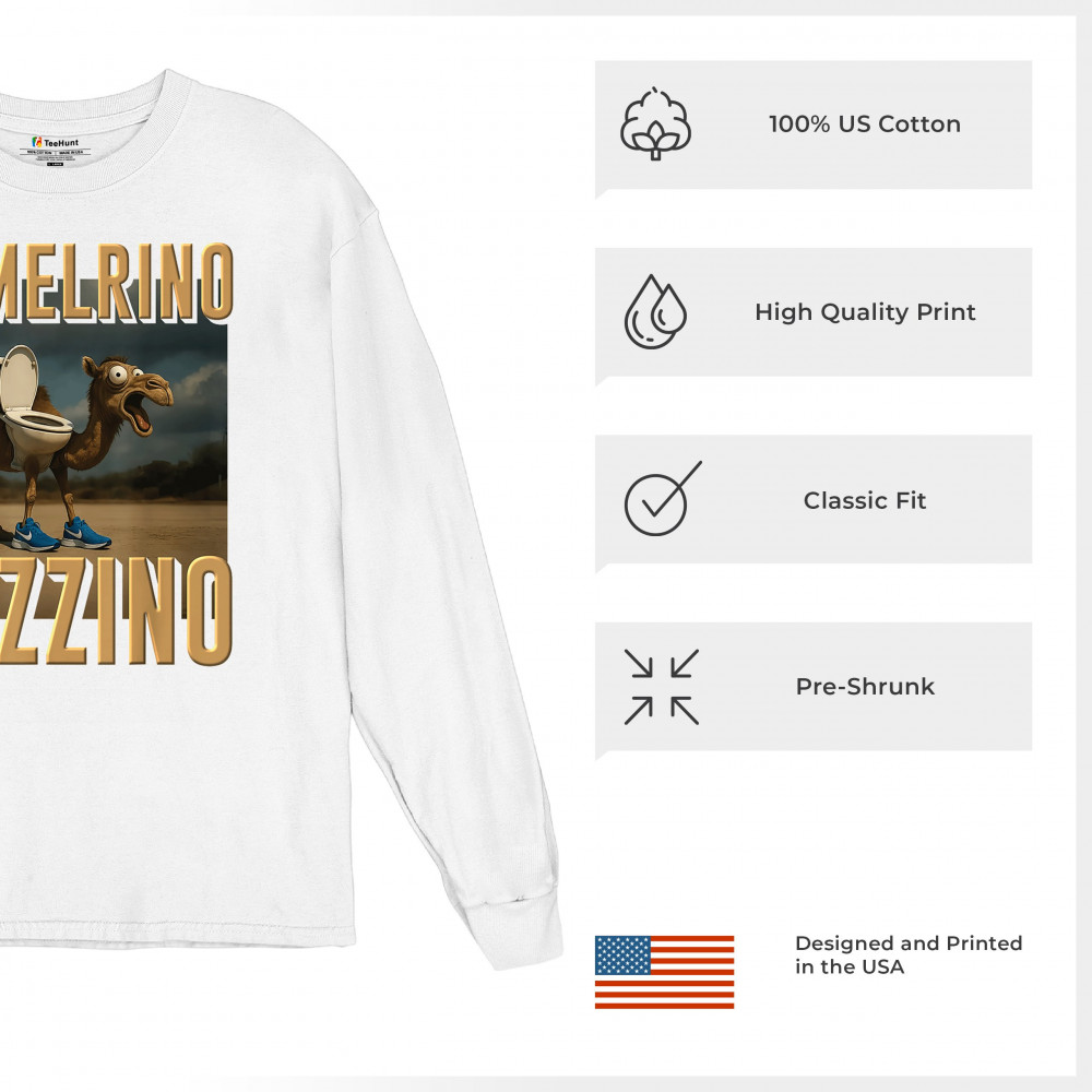 Camelrino Tazzino delivers a double flush of internet madness. With a toilet body, running shoes, and a camel's face frozen in horror, this meme mashup blends cursed-core design, viral TikTok humor, surreal animal chaos, and Gen Z meme fashion. Built for weirdcore lovers and internet irony addicts.