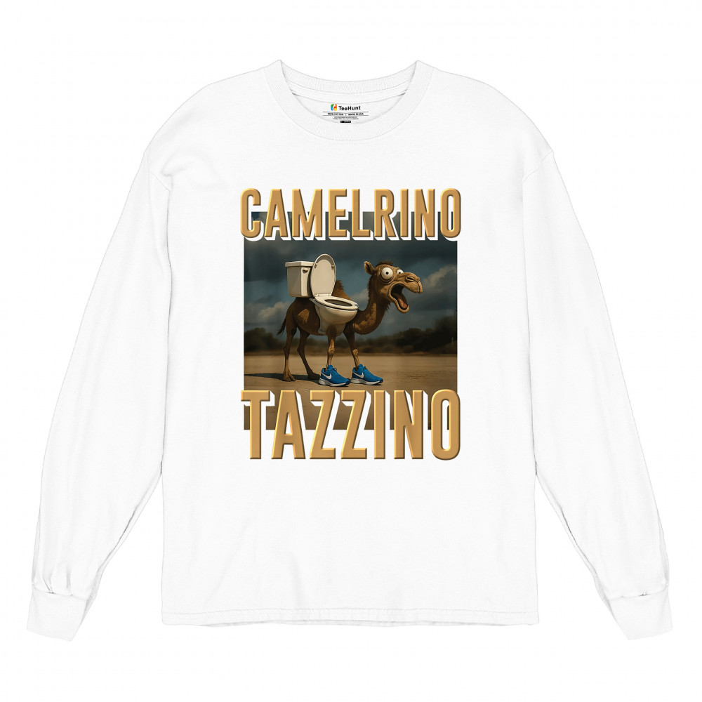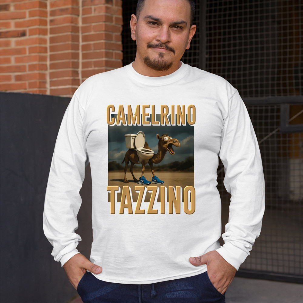 Camelrino Tazzino fuses toilet-core fashion, cursed camel chaos, TikTok meme humor, surreal animal design, and Gen Z absurdity.