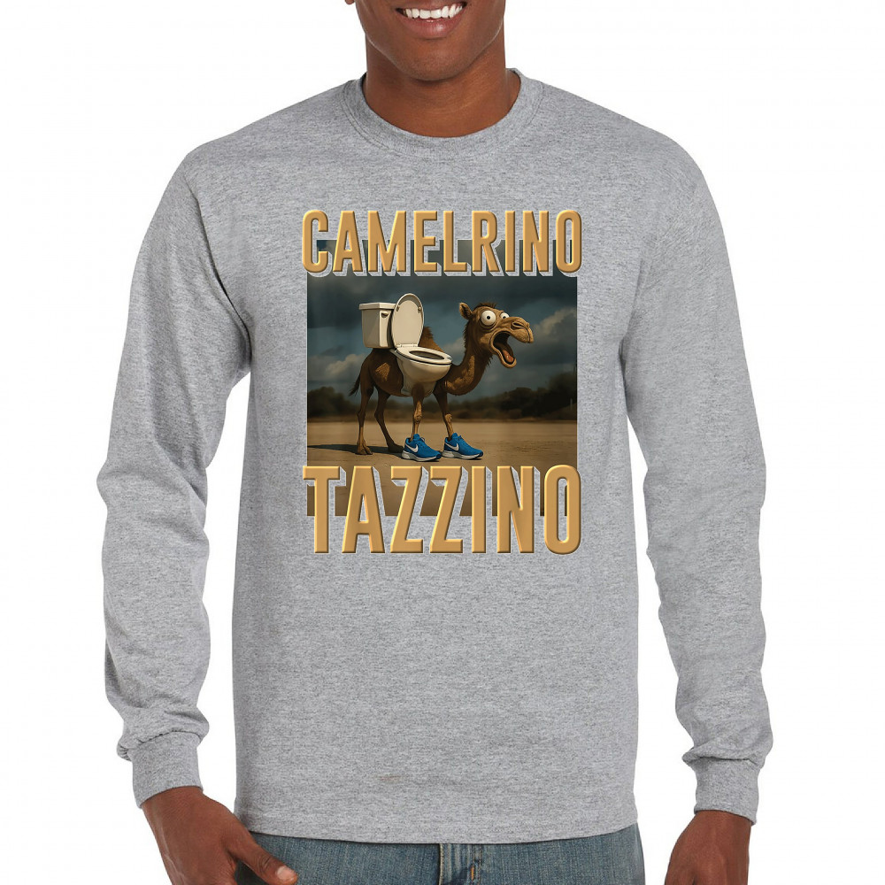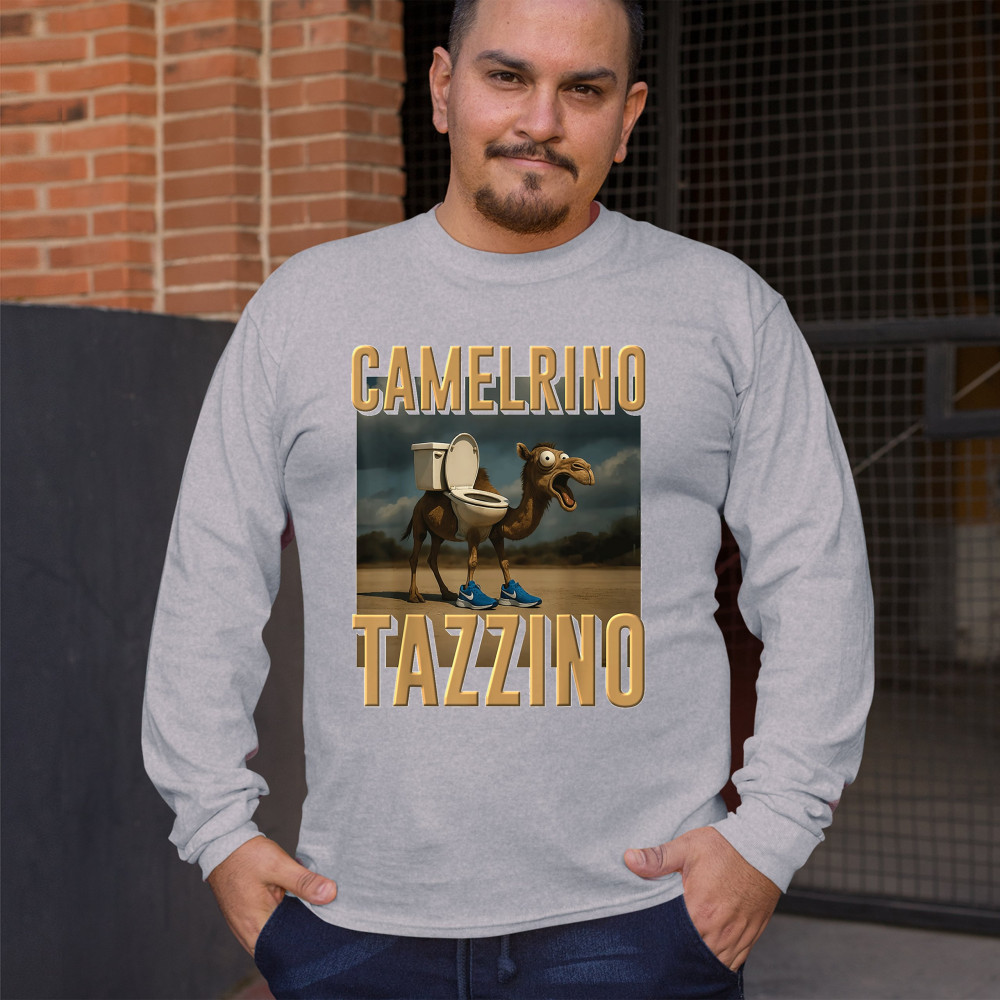 Camelrino Tazzino fuses toilet-core fashion, cursed camel chaos, TikTok meme humor, surreal animal design, and Gen Z absurdity.
