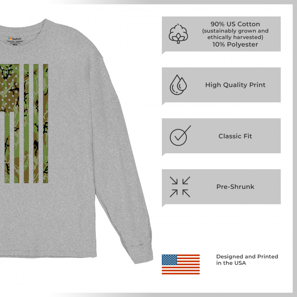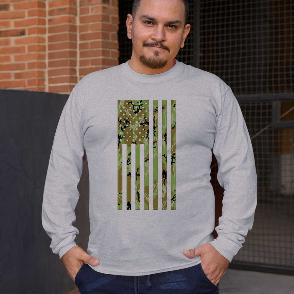 Show your American pride with this camouflage flag design. Perfect for veterans and patriots. Ideal for the 4th of July, Memorial Day, and Veterans Day.