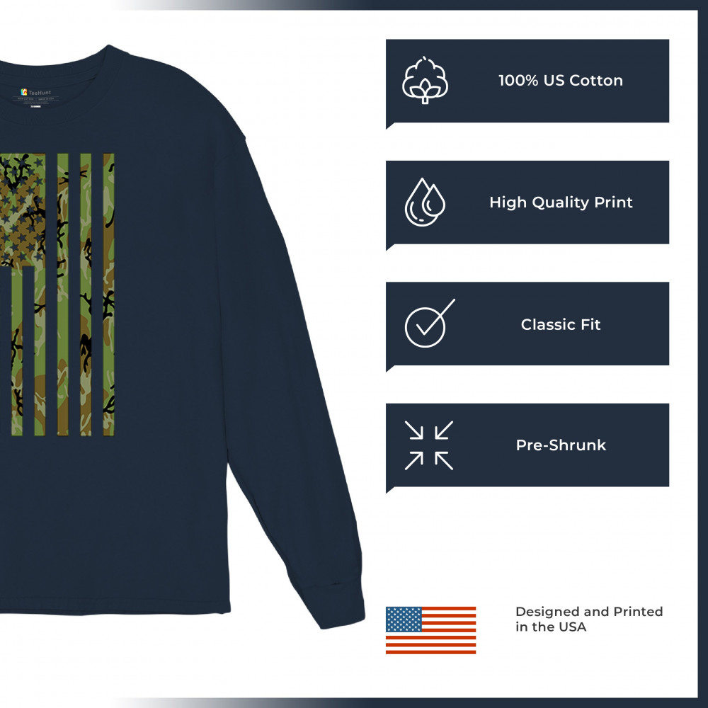 Celebrate your American pride with this bold camouflage American flag design. Perfect for veterans, active military members, and patriots who stand for freedom and honor. This design is an excellent choice for patriotic occasions such as Independence Day, Memorial Day, and Veterans Day. Show your support for the Second Amendment and the values that make America great. Wear it proudly and let your love for the USA be seen.