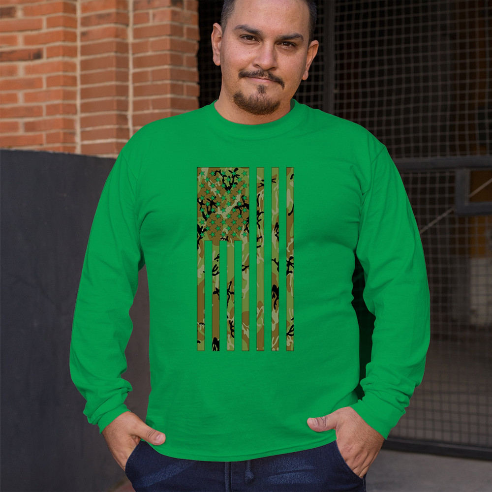 Show your American pride with this camouflage flag design. Perfect for veterans and patriots. Ideal for the 4th of July, Memorial Day, and Veterans Day.