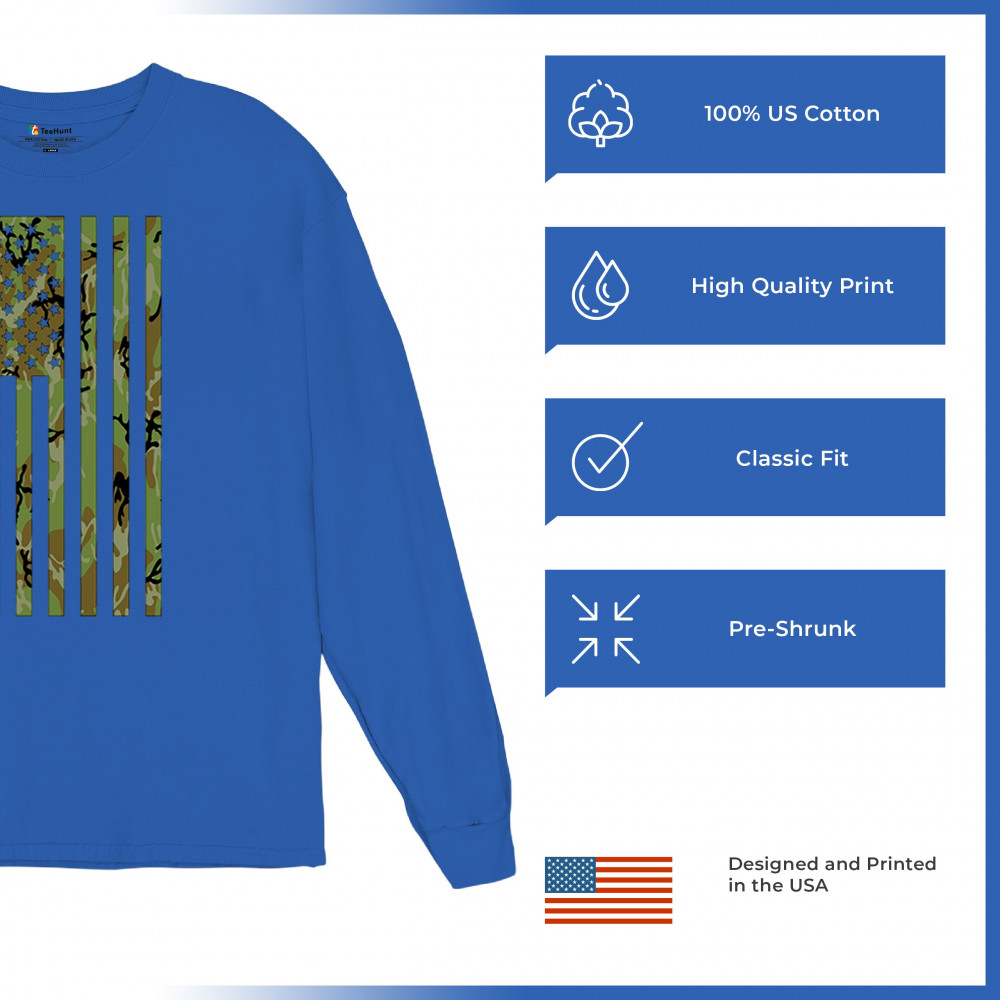 Celebrate your American pride with this bold camouflage American flag design. Perfect for veterans, active military members, and patriots who stand for freedom and honor. This design is an excellent choice for patriotic occasions such as Independence Day, Memorial Day, and Veterans Day. Show your support for the Second Amendment and the values that make America great. Wear it proudly and let your love for the USA be seen.