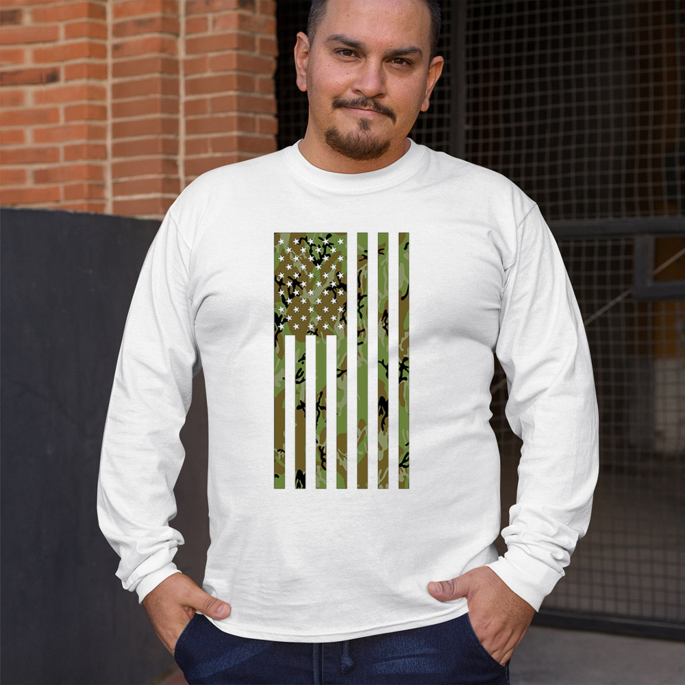 Show your American pride with this camouflage flag design. Perfect for veterans and patriots. Ideal for the 4th of July, Memorial Day, and Veterans Day.