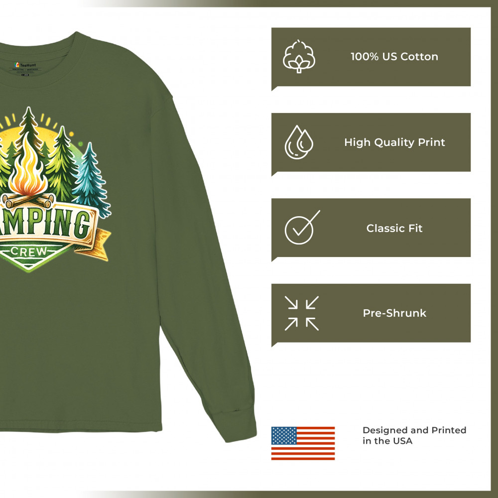 Camping Crew is made for trail lovers, glamping fans, and outdoorsmen who thrive in nature. Celebrate camping adventures, campfire moments, and wilderness vibes with this fun, cozy design. Perfect for family trips, forest escapes, and national park exploration in any season.
