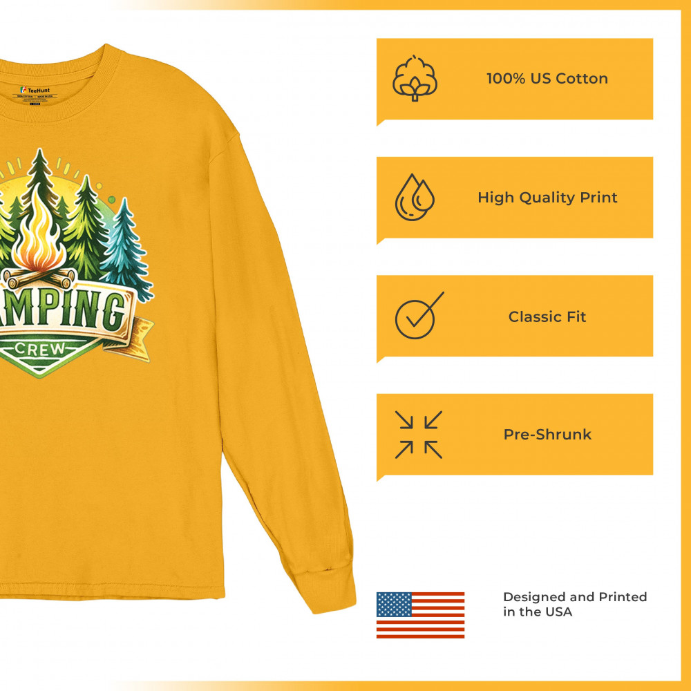 Camping Crew is made for trail lovers, glamping fans, and outdoorsmen who thrive in nature. Celebrate camping adventures, campfire moments, and wilderness vibes with this fun, cozy design. Perfect for family trips, forest escapes, and national park exploration in any season.