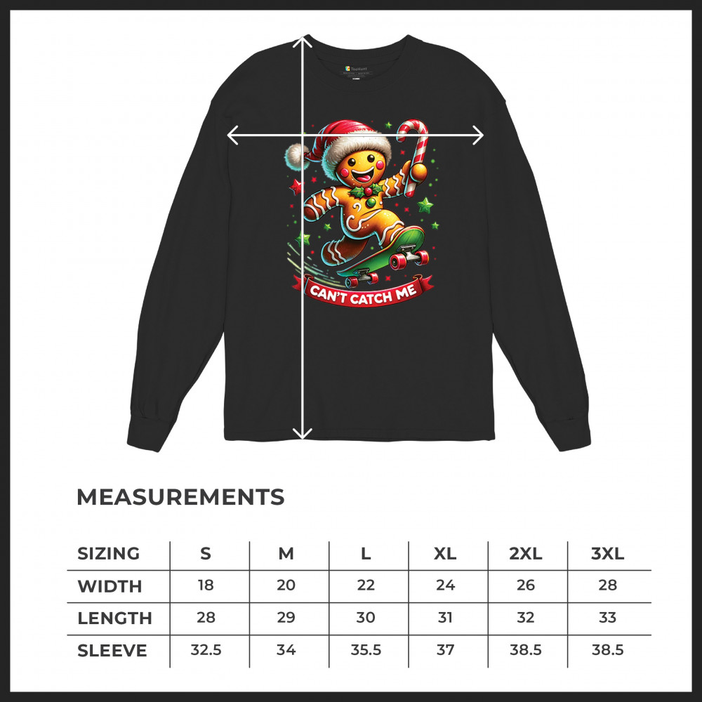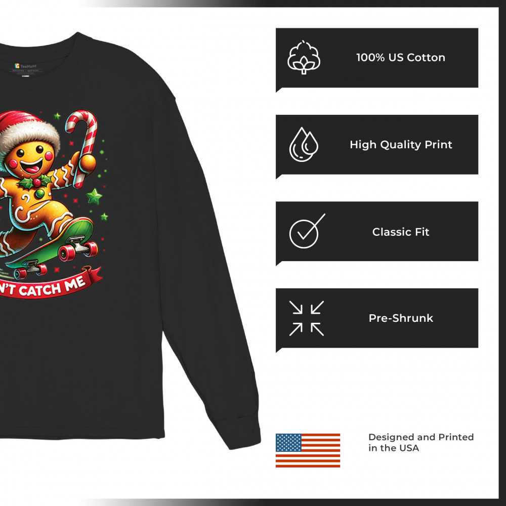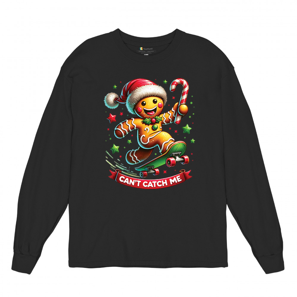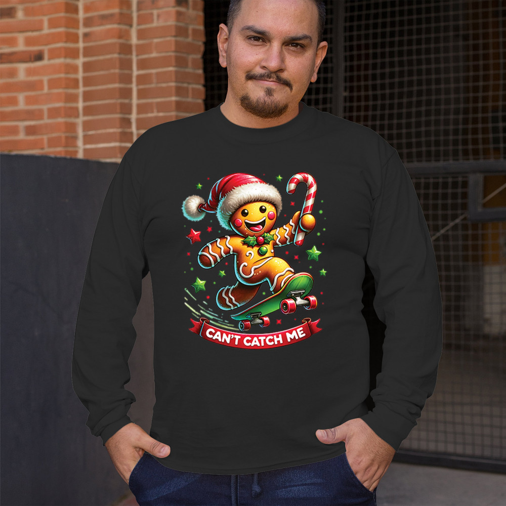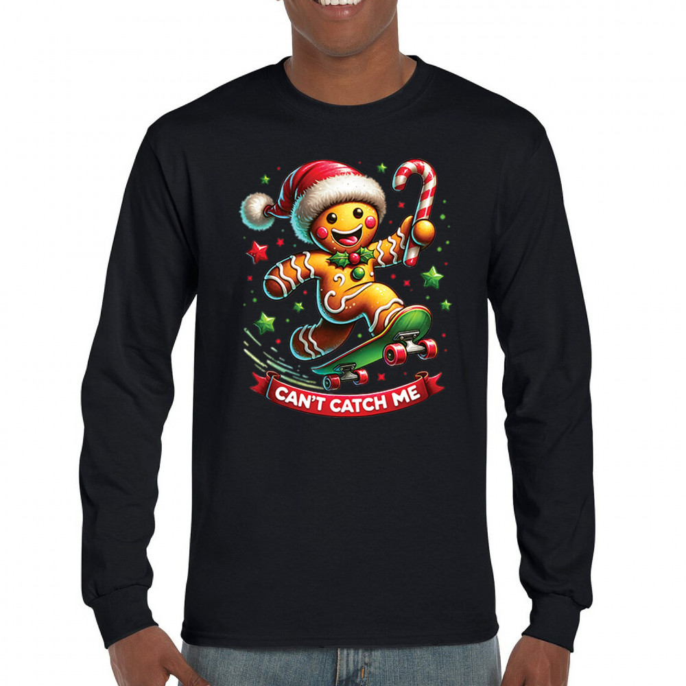 CAN'T CATCH ME GINGERBREAD MAN long sleeve t-shirt funny christmas jolly xmas black