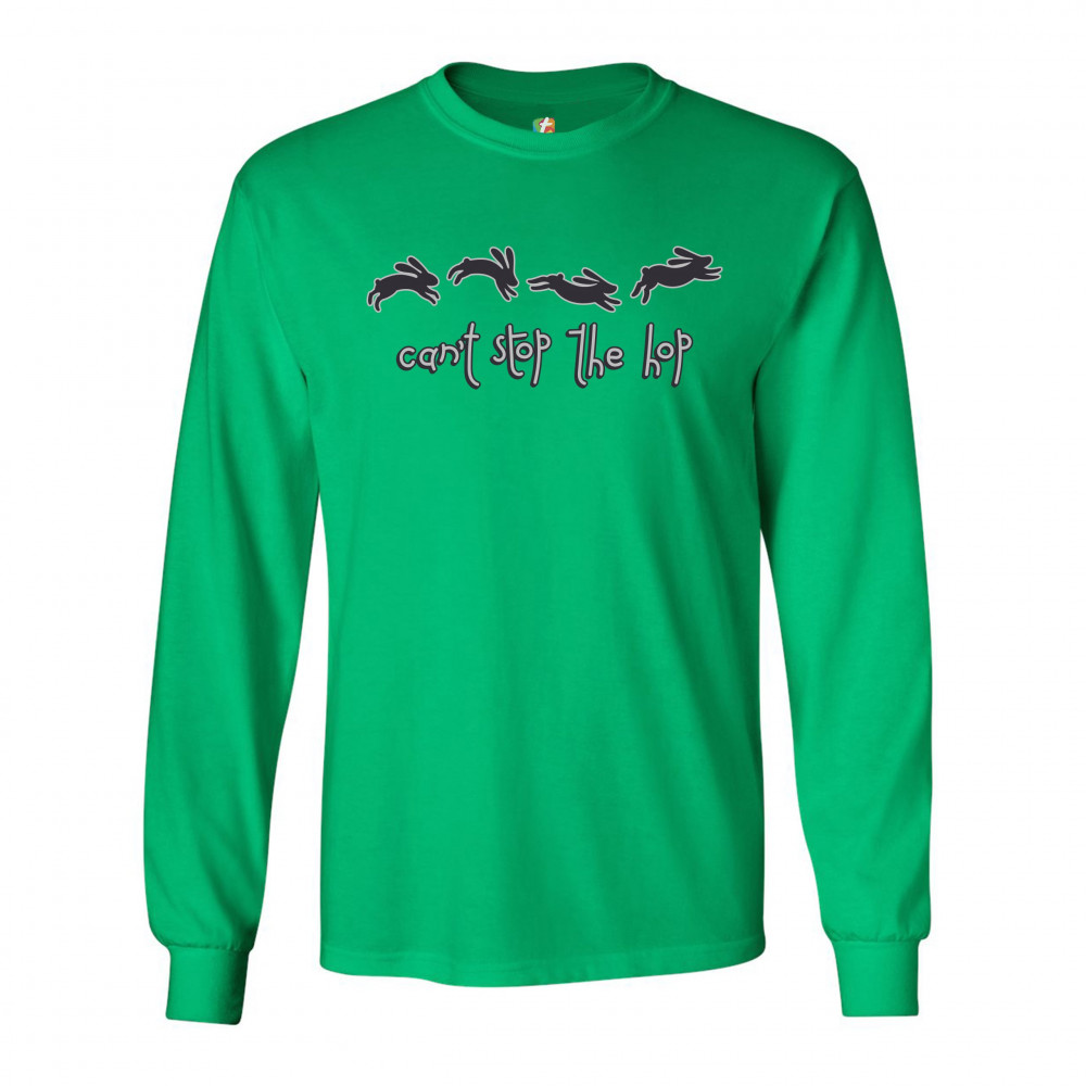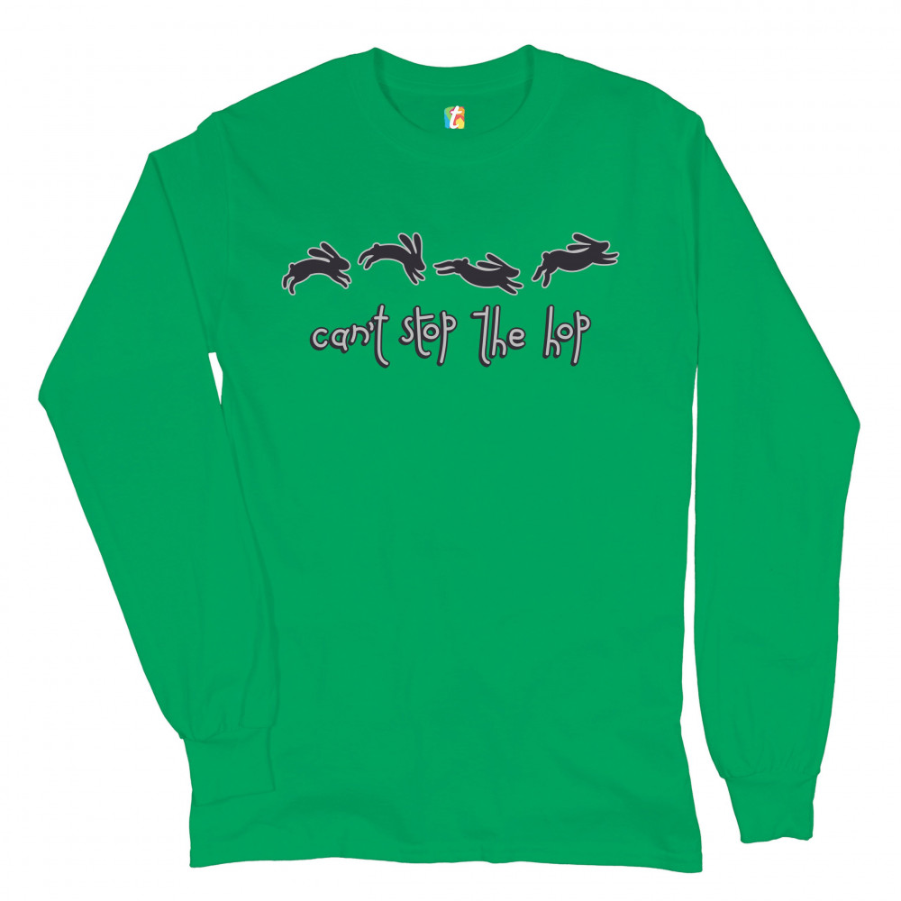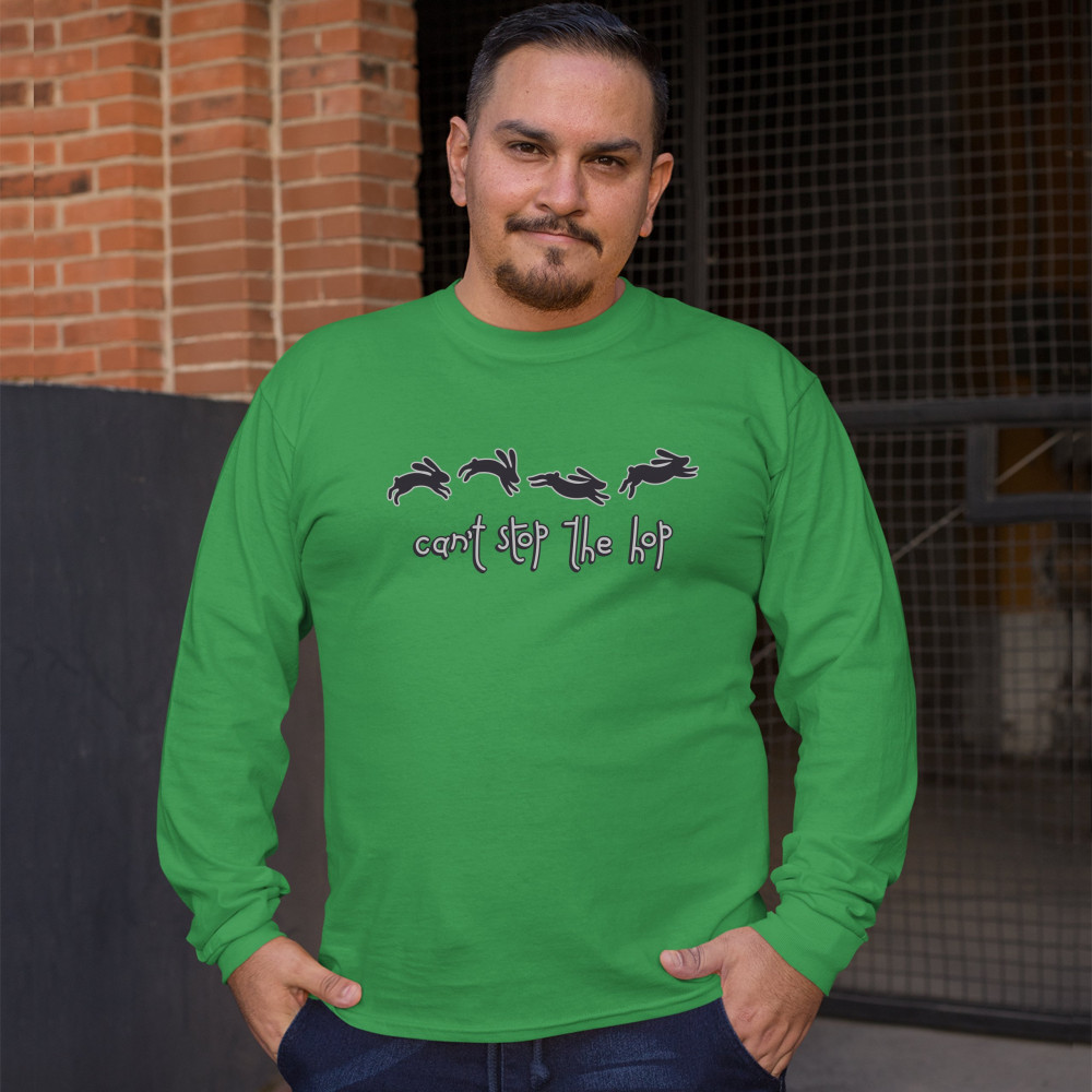 CAN'T STOP THE HOP long sleeve t-shirt happy easter funny hopping rabbits green