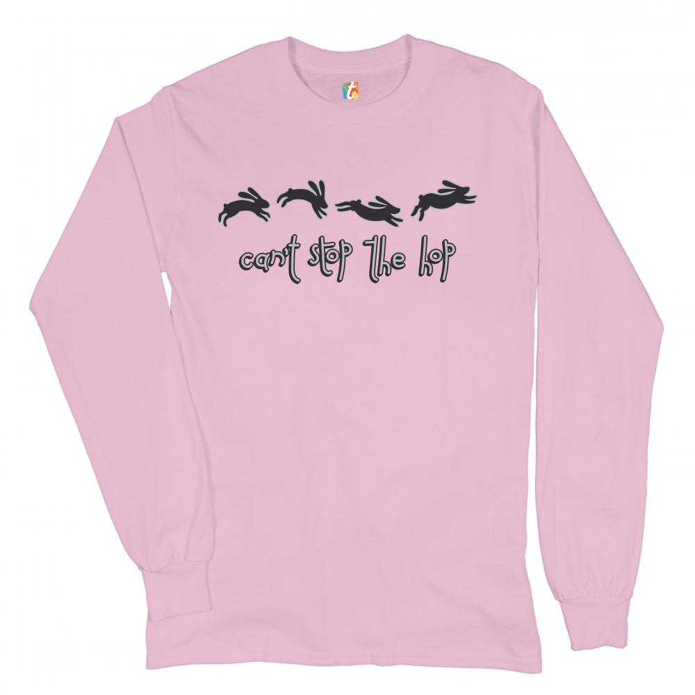 CAN'T STOP THE HOP long sleeve t-shirt happy easter funny hopping rabbits pink