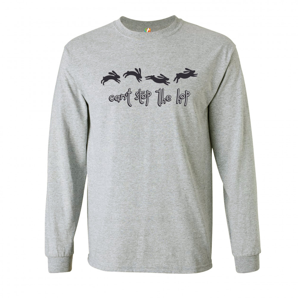 CAN'T STOP THE HOP long sleeve t-shirt happy easter funny hopping rabbits gray