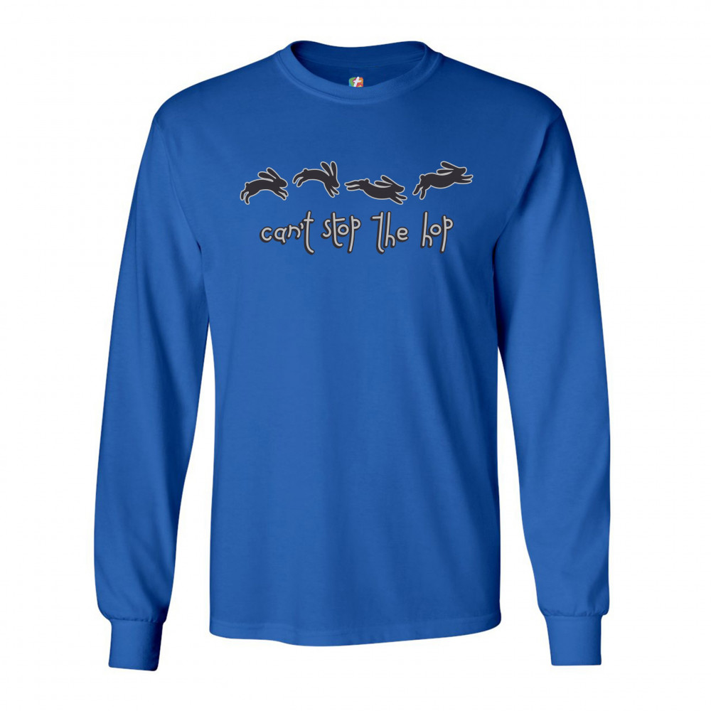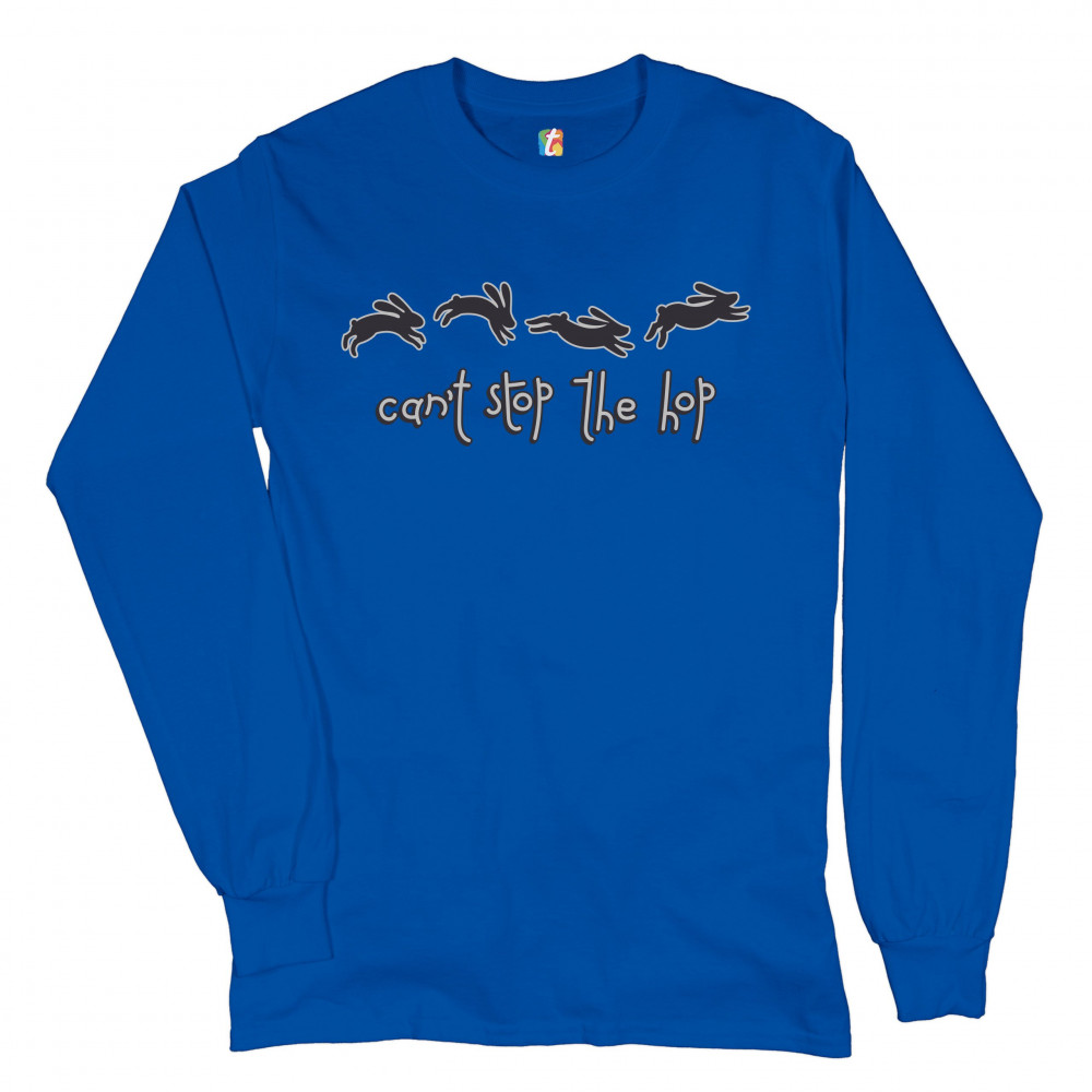 CAN'T STOP THE HOP long sleeve t-shirt happy easter funny hopping rabbits royal blue