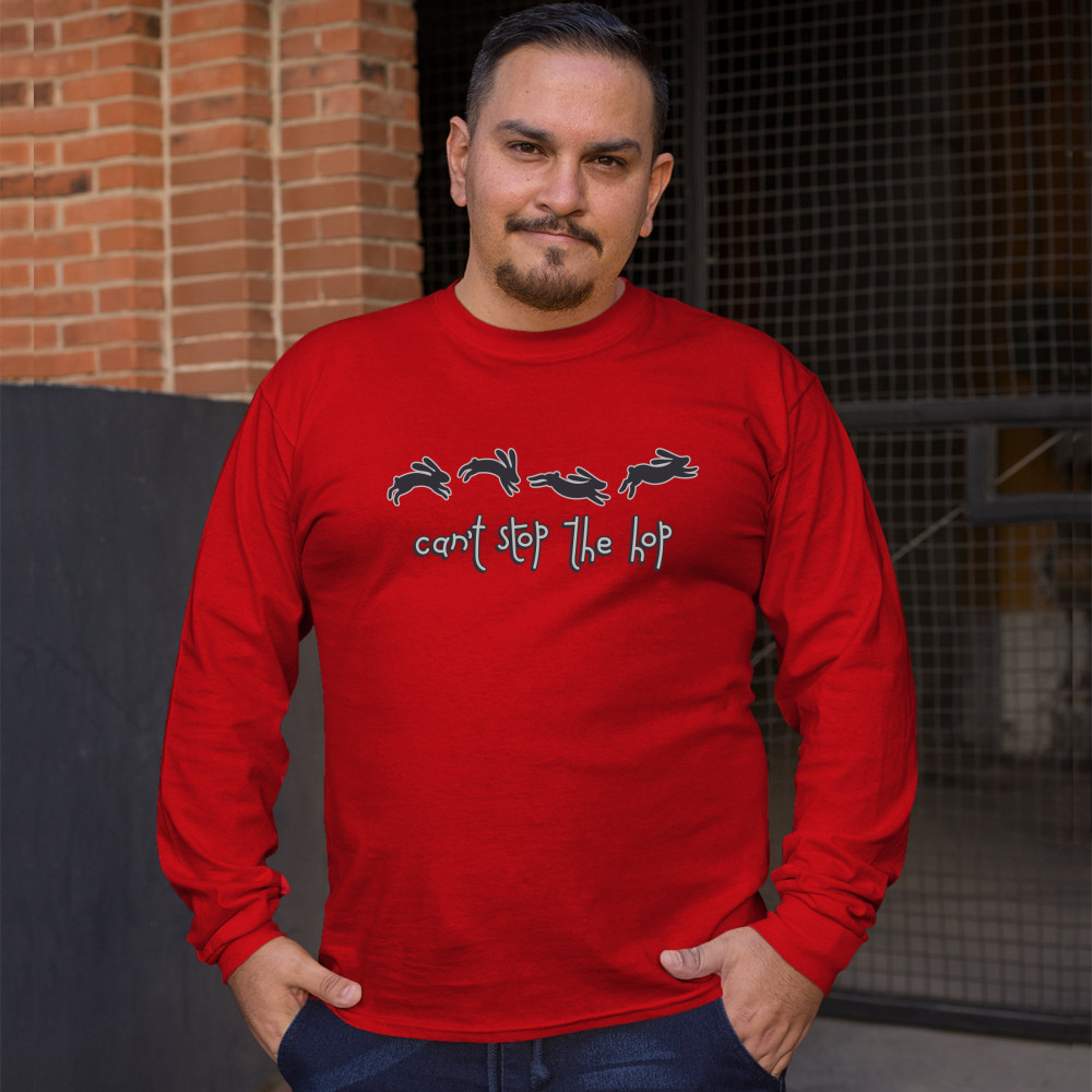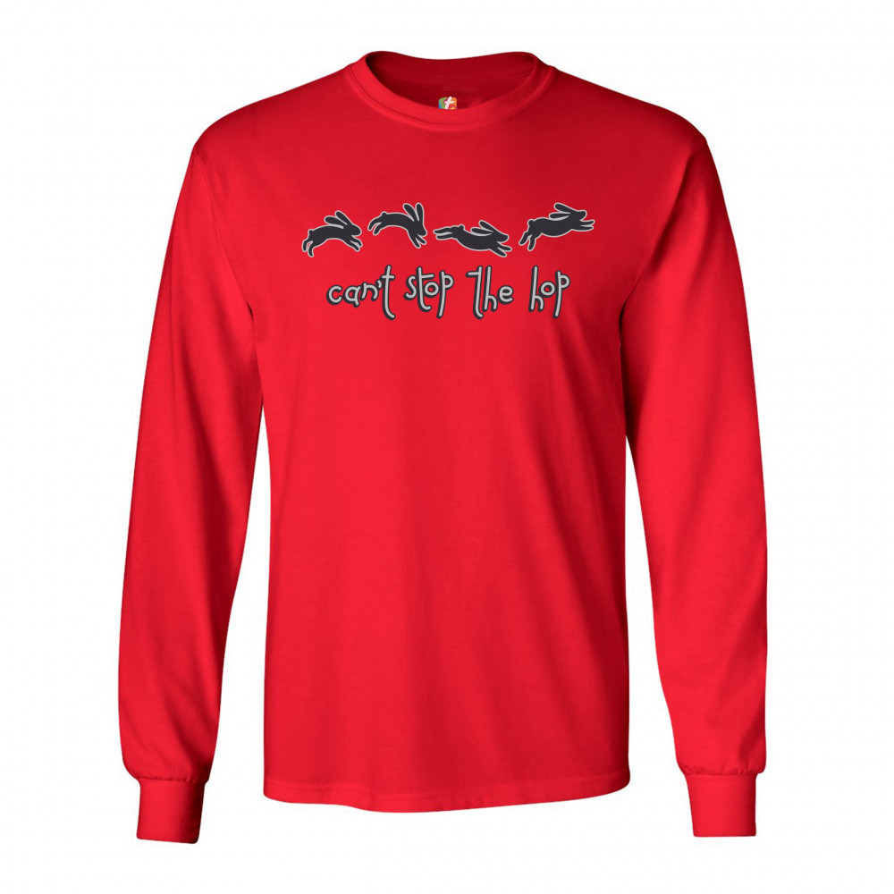 CAN'T STOP THE HOP long sleeve t-shirt happy easter funny hopping rabbits red
