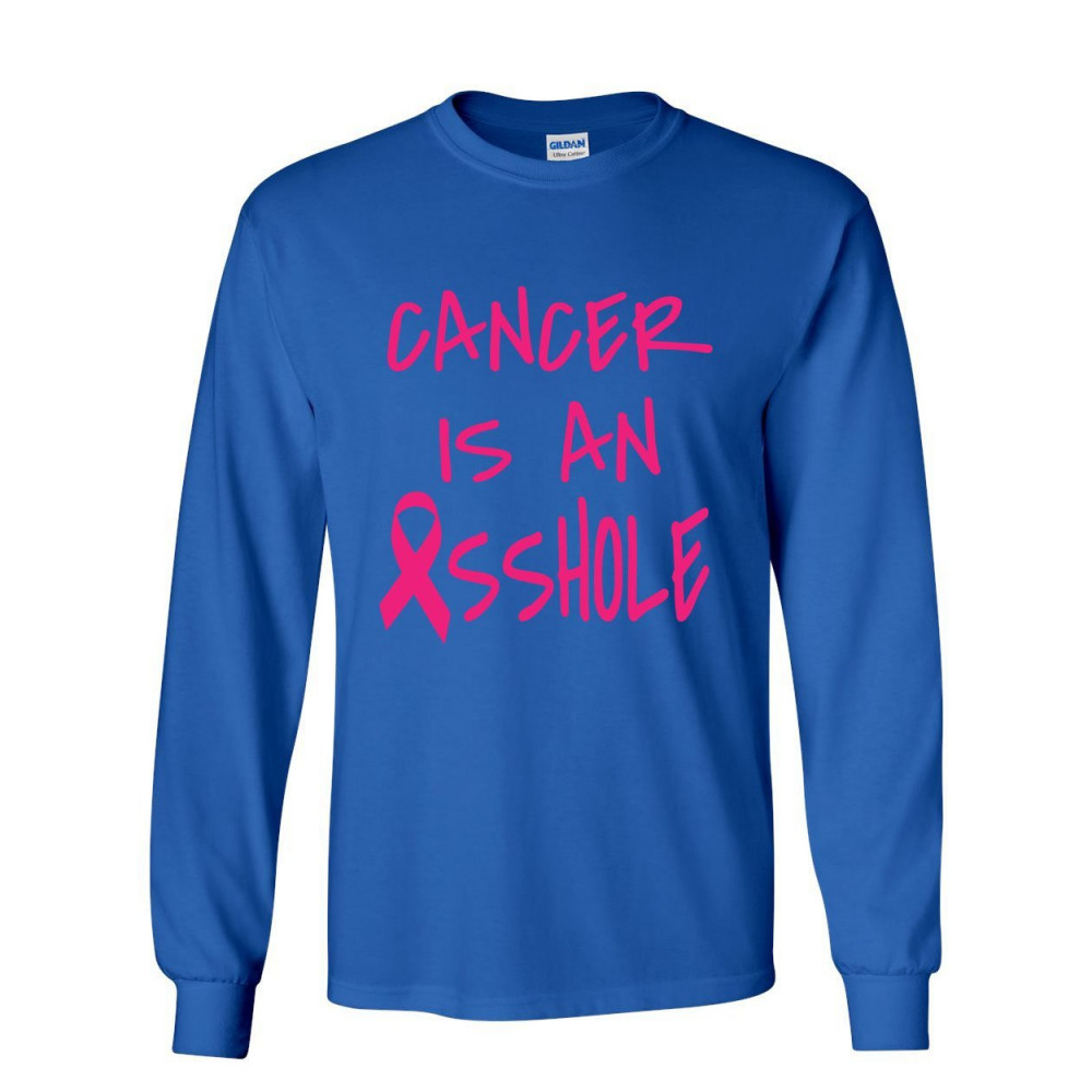 CANCER IS AN ASSHOLE long sleeve t-shirtbreast cancer awareness royal blue