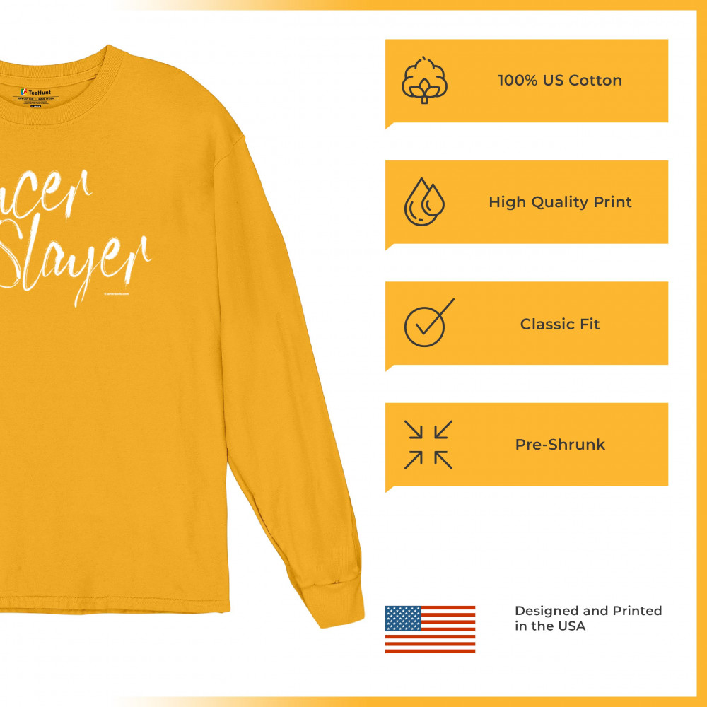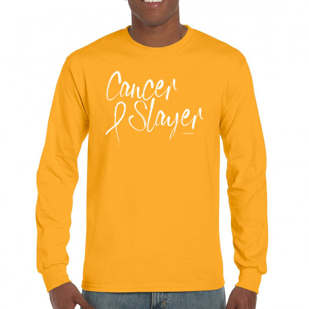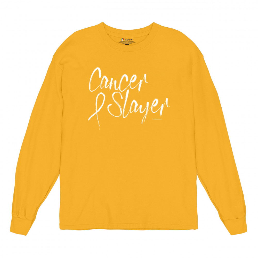 CANCER SLAYER long sleeve t-shirt breast cancer awareness ribbon hope healing yellow
