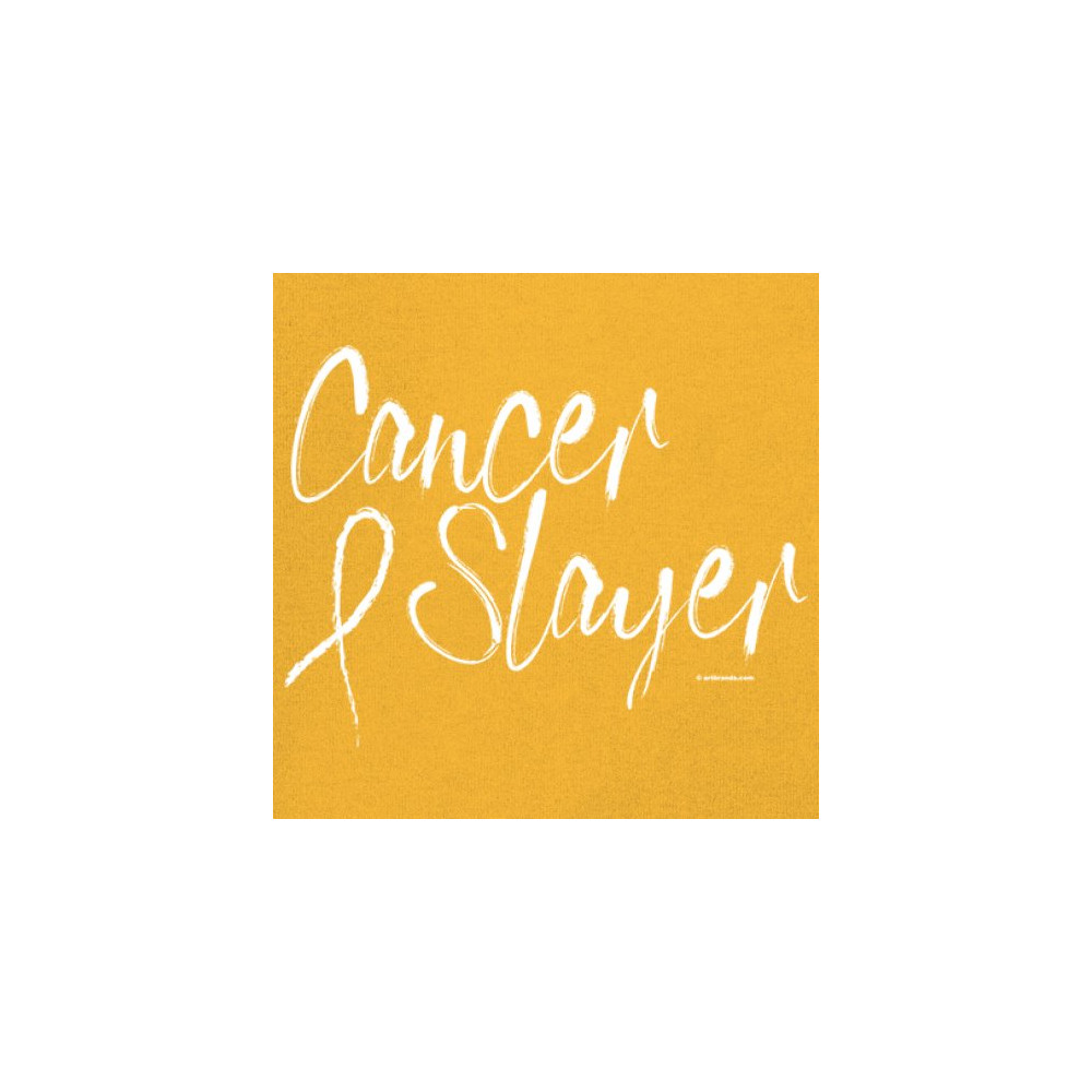 A print featuring a ribbon and saying "Cancer Slayer". Wear it to spread awareness abouth the disease and support a person you know who is battling it at the moment.