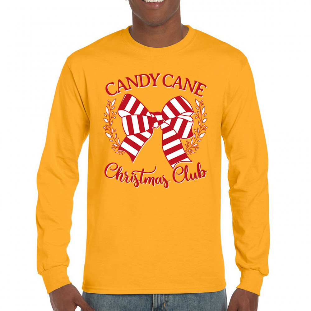 Celebrate the season with our Candy Cane Christmas Club design, crafted to spread holiday cheer with its classic red and white candy cane bow. Perfect for family gatherings, Secret Santa exchanges, or festive office parties, this charming design adds a joyful touch to any event. Ideal for matching his and hers outfits or as a cozy holiday gift, it’s a must-have for those looking to add a festive spirit. From holiday mornings to evening parties, it brings Christmas cheer to all!