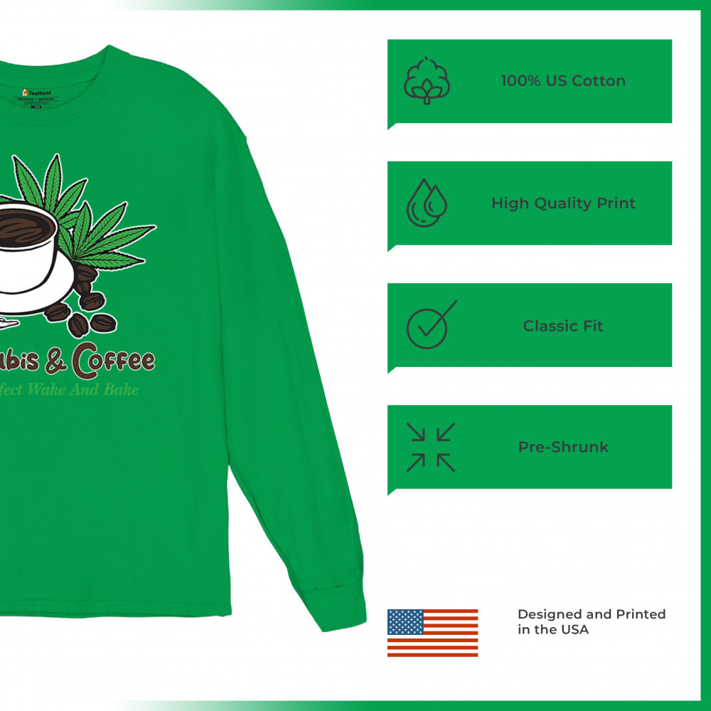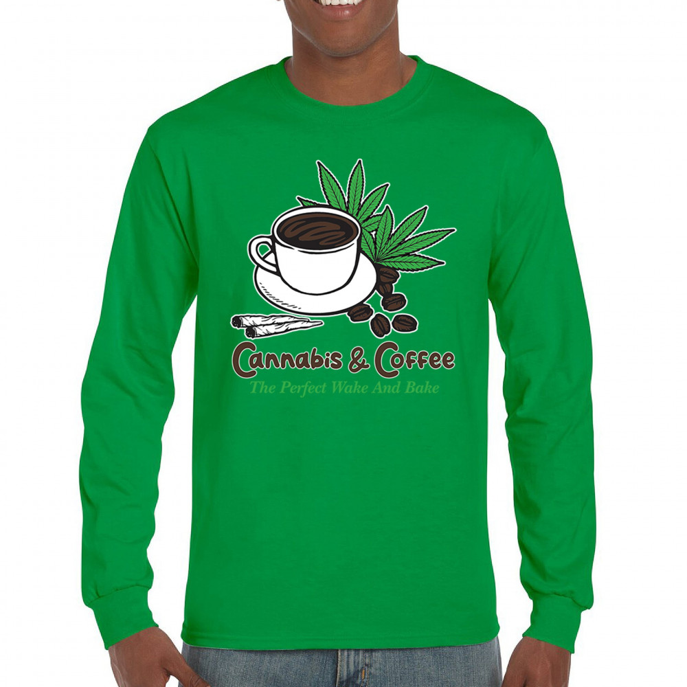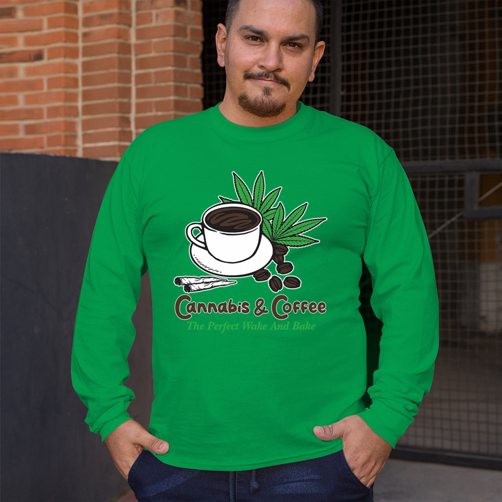 A chill cannabis and coffee design with cup, joints, and beans. Great for wake-and-bake fans, mellow mornings, and herb-fueled coffee lovers.