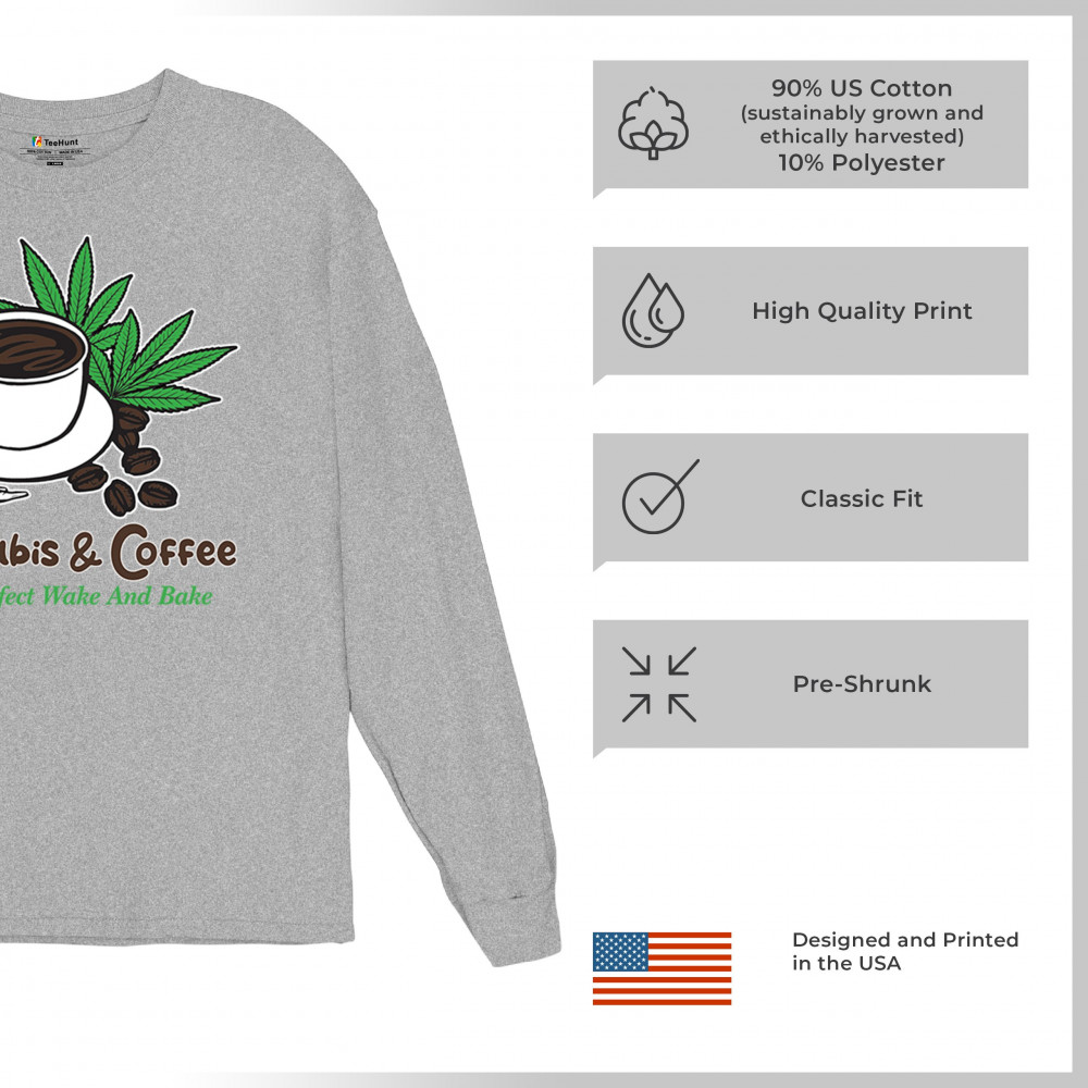 A chill cannabis and coffee design with cup, joints, and beans. Great for wake-and-bake fans, mellow mornings, and herb-fueled coffee lovers.