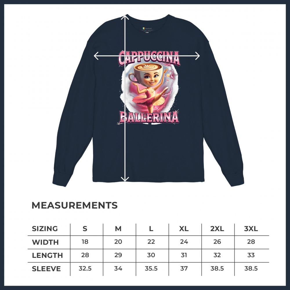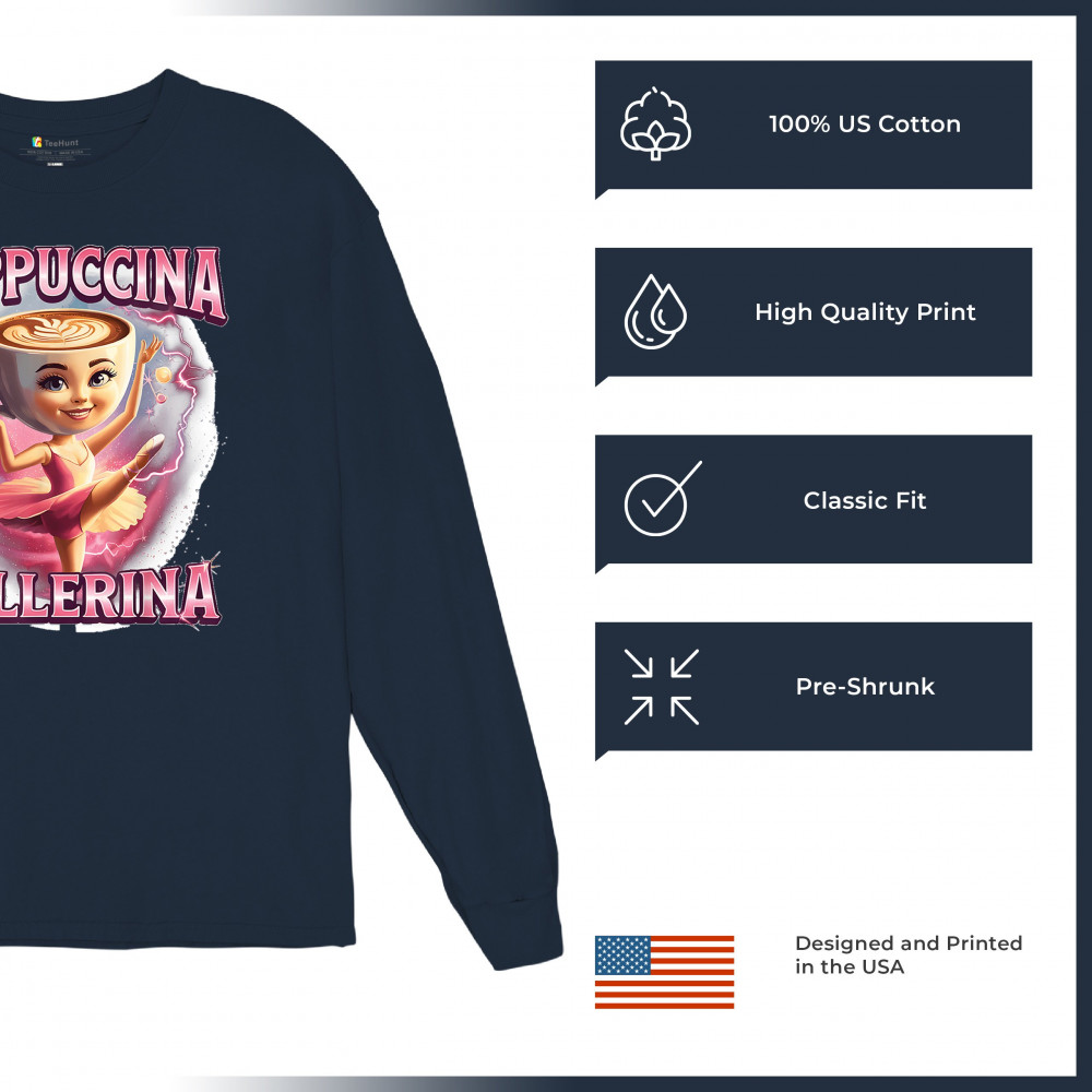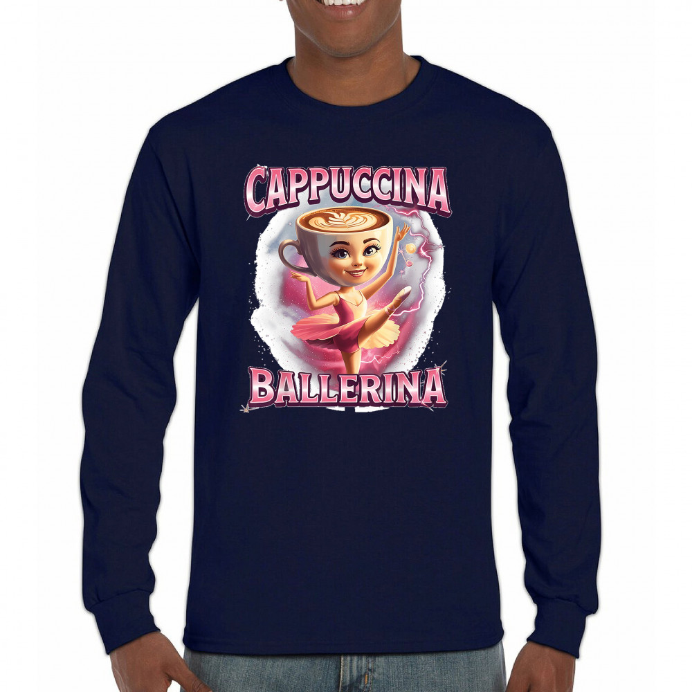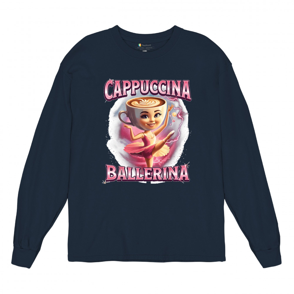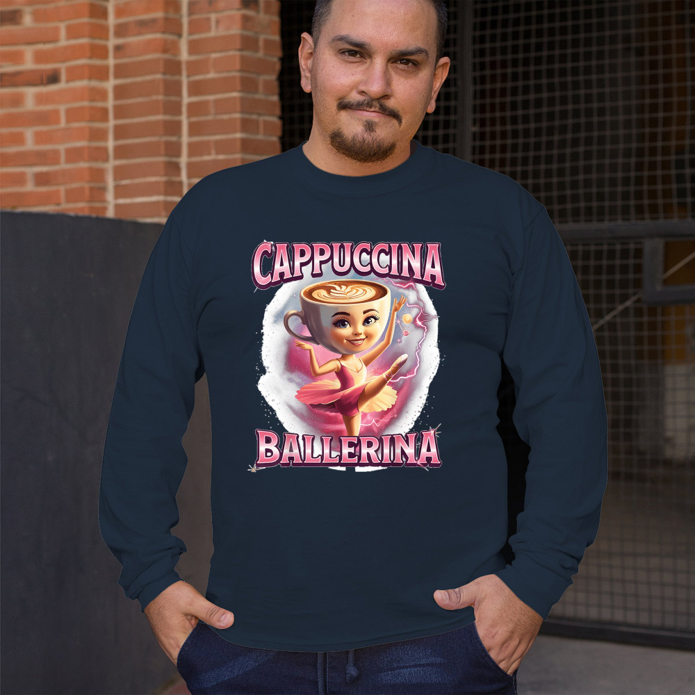 Cappuccina Ballerina is your perfect mix of meme chaos and coffee-core fashion. This absurd design features a ballet-dancing cappuccino head with weirdcore flair and Gen Z humor. A surreal blend of ironic internet fashion, TikTok trends, and espresso madness—ideal for meme lovers, caffeine addicts, and viral absurdists alike.