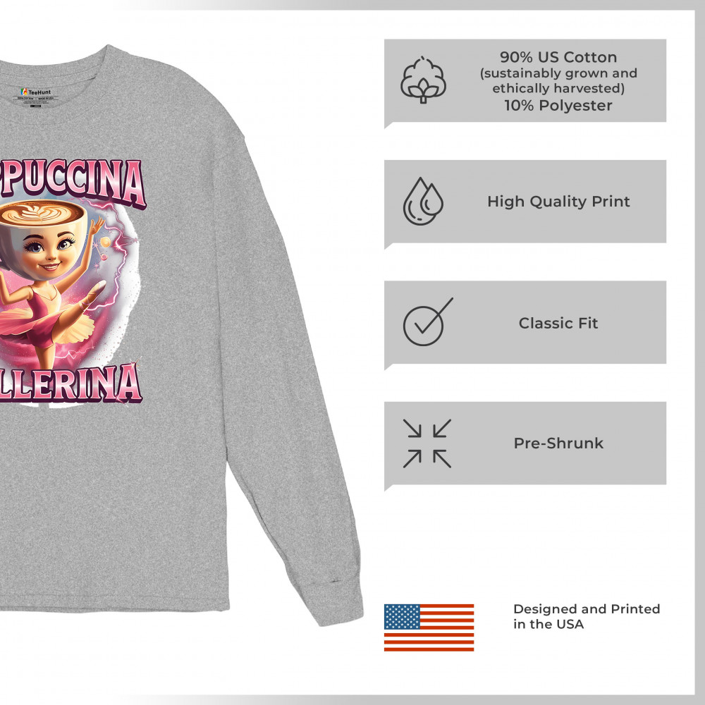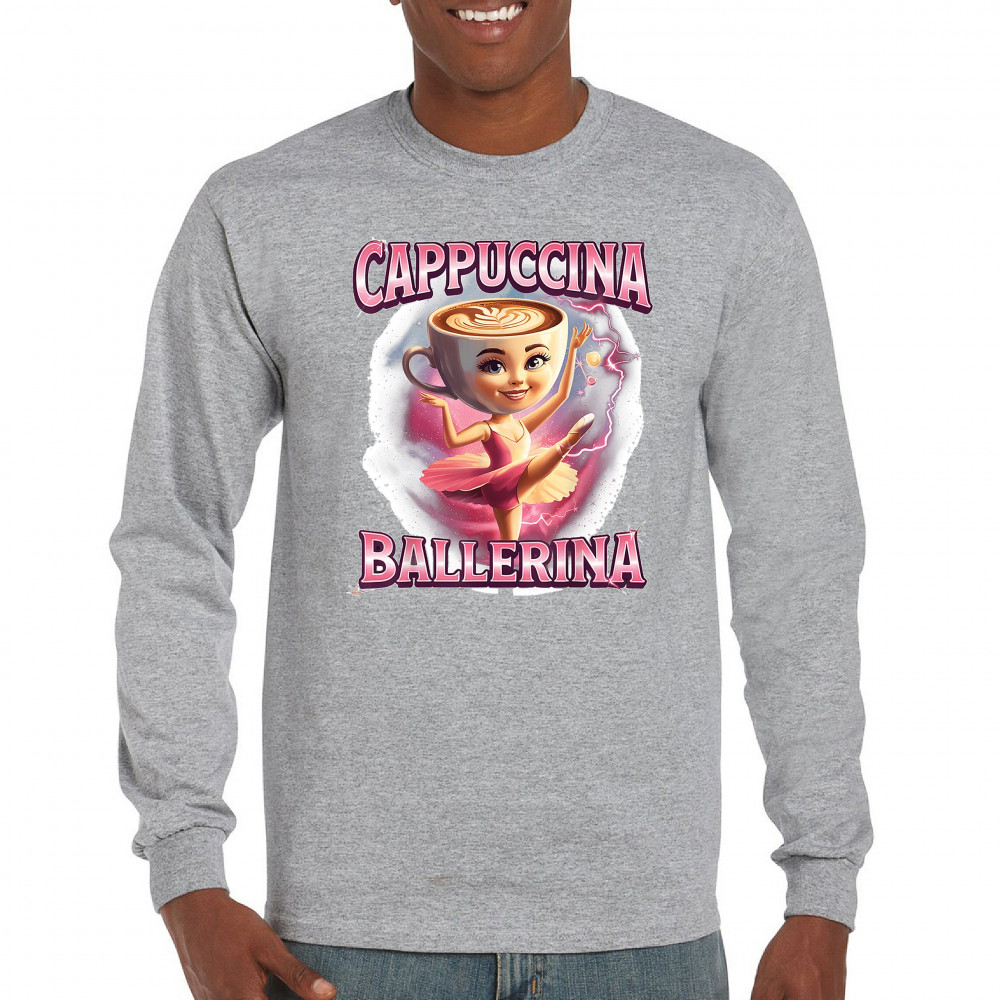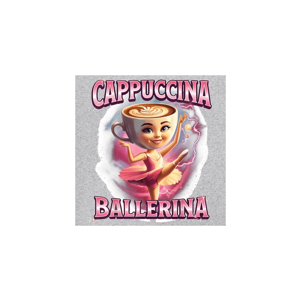 Cappuccina Ballerina is your perfect mix of meme chaos and coffee-core fashion. This absurd design features a ballet-dancing cappuccino head with weirdcore flair and Gen Z humor. A surreal blend of ironic internet fashion, TikTok trends, and espresso madness—ideal for meme lovers, caffeine addicts, and viral absurdists alike.