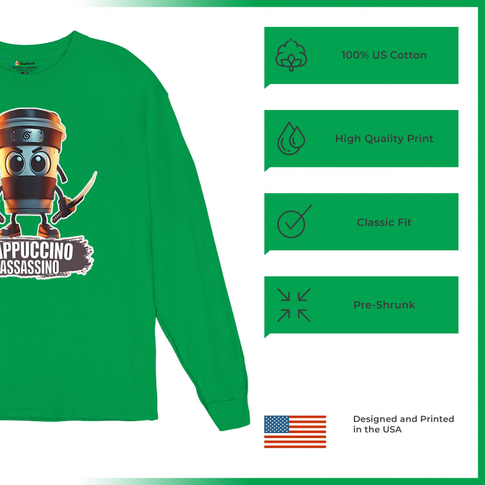 Cappuccino Assassino is brewed for chaos. Featuring an espresso cup ninja with blades and brainrot vibes, this design blends cursed-core humor, surreal coffee memes, and TikTok-driven absurdity. Built for caffeine freaks, meme lovers, and Gen Z fans of ironic, unhinged style. Sip rage, wear nonsense.