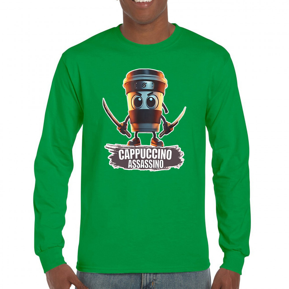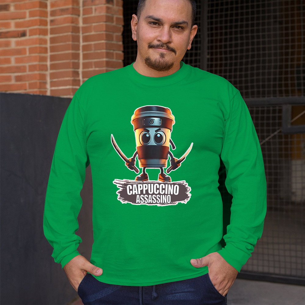 Cappuccino Assassino fuses cursed coffee memes, ninja chaos, ironic TikTok fashion, espresso humor, and Gen Z internet absurdity.