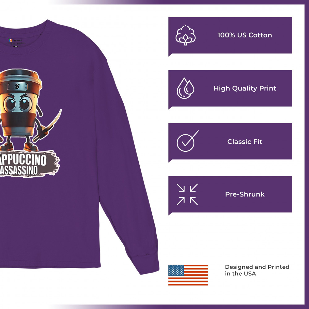 Cappuccino Assassino is brewed for chaos. Featuring an espresso cup ninja with blades and brainrot vibes, this design blends cursed-core humor, surreal coffee memes, and TikTok-driven absurdity. Built for caffeine freaks, meme lovers, and Gen Z fans of ironic, unhinged style. Sip rage, wear nonsense.