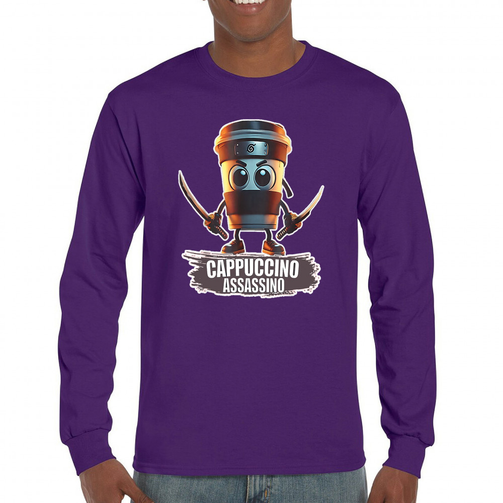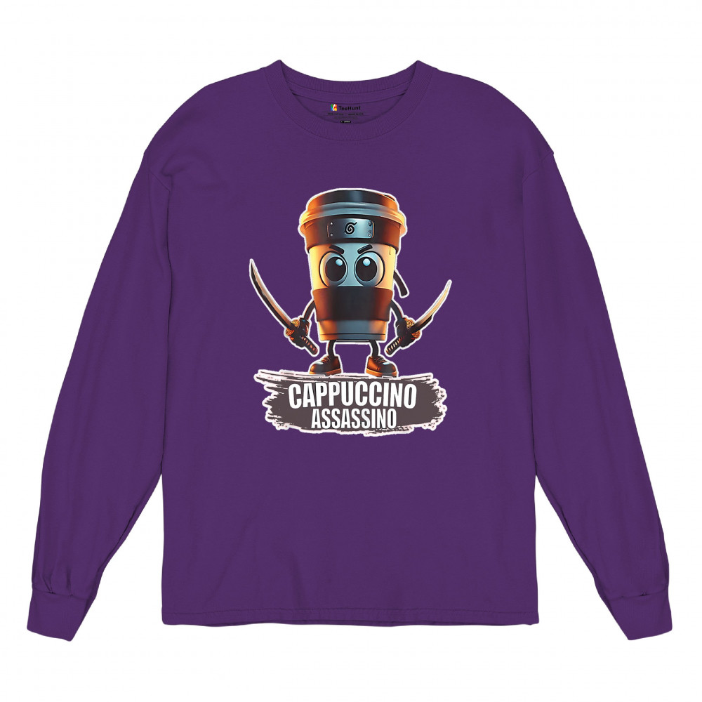 Cappuccino Assassino fuses cursed coffee memes, ninja chaos, ironic TikTok fashion, espresso humor, and Gen Z internet absurdity.