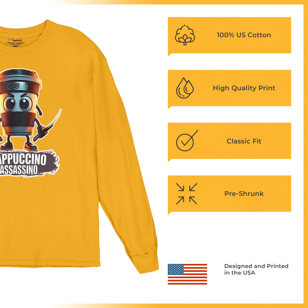 Cappuccino Assassino is brewed for chaos. Featuring an espresso cup ninja with blades and brainrot vibes, this design blends cursed-core humor, surreal coffee memes, and TikTok-driven absurdity. Built for caffeine freaks, meme lovers, and Gen Z fans of ironic, unhinged style. Sip rage, wear nonsense.