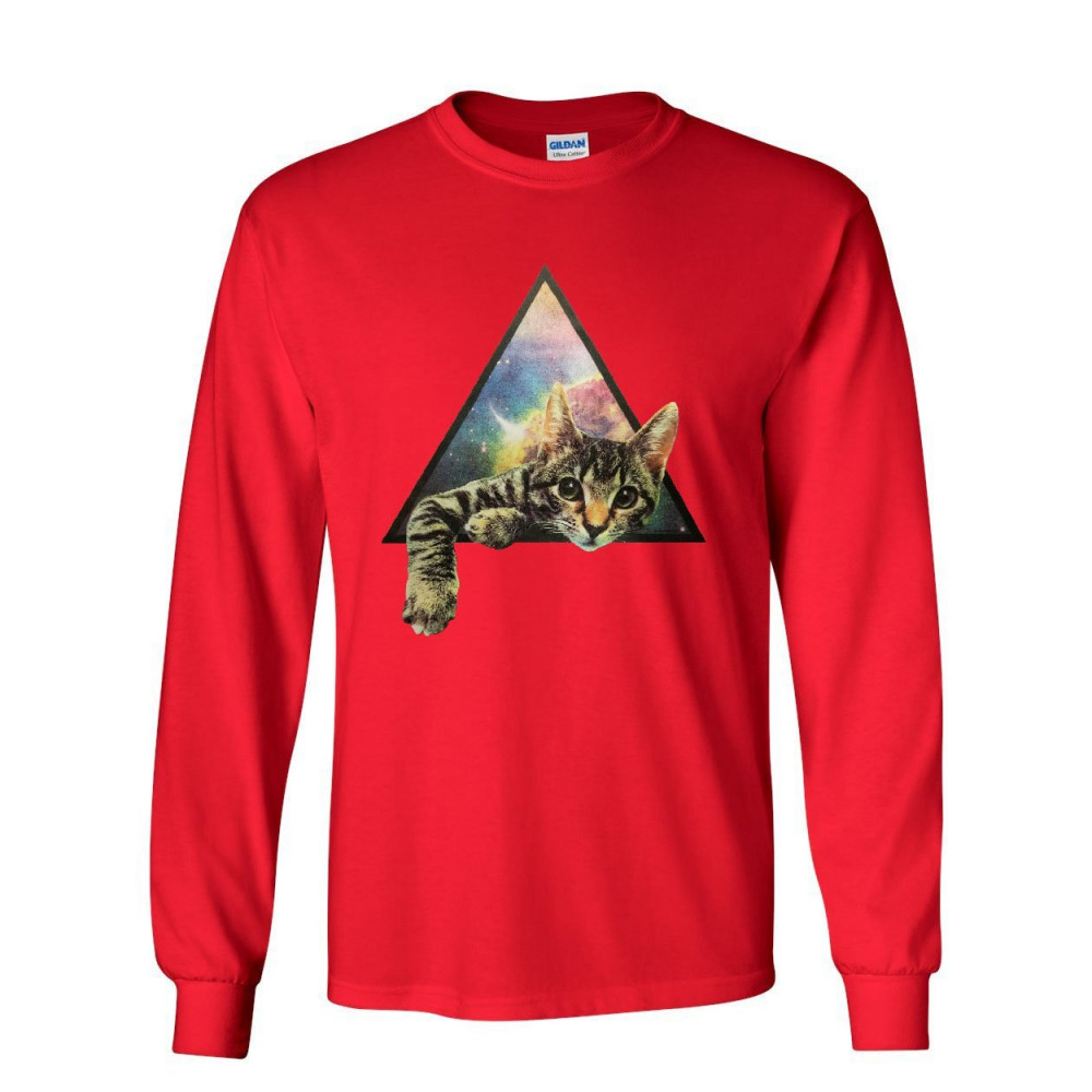 GALAXY CAT long sleeve t-shirt cute kitten pet universe tee red