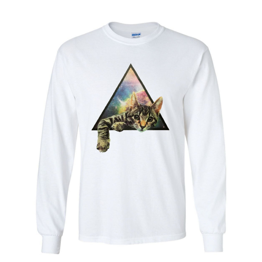 GALAXY CAT long sleeve t-shirt cute kitten pet universe tee white