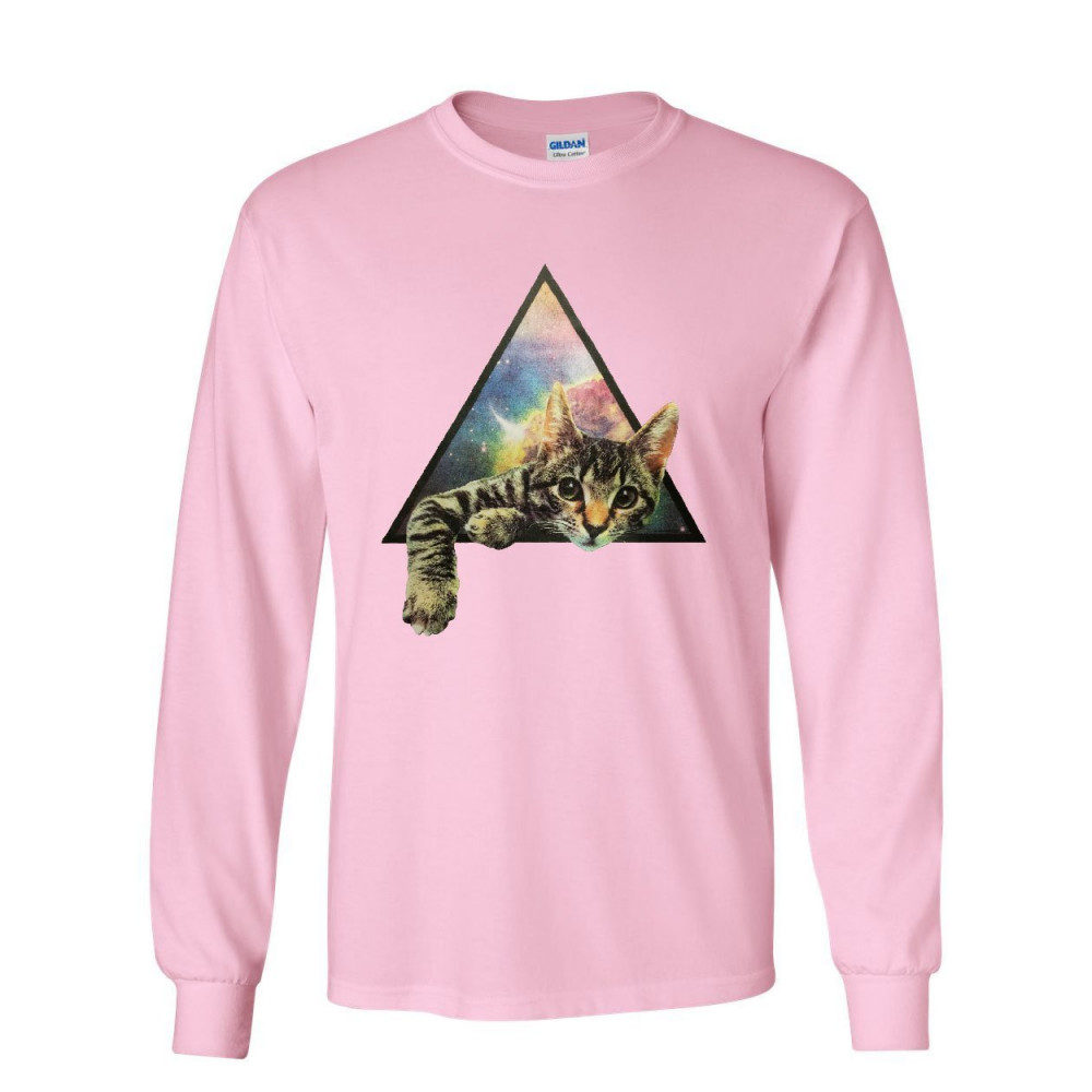 GALAXY CAT long sleeve t-shirt cute kitten pet universe tee light pink