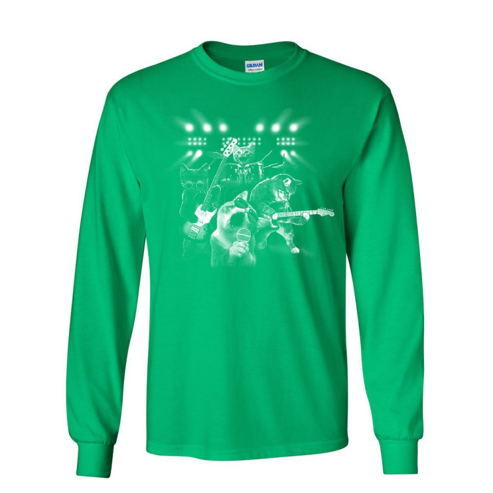 CATS ROCK CONCERT long sleeve t-shirt rock & roll cat lover kitten music tee green