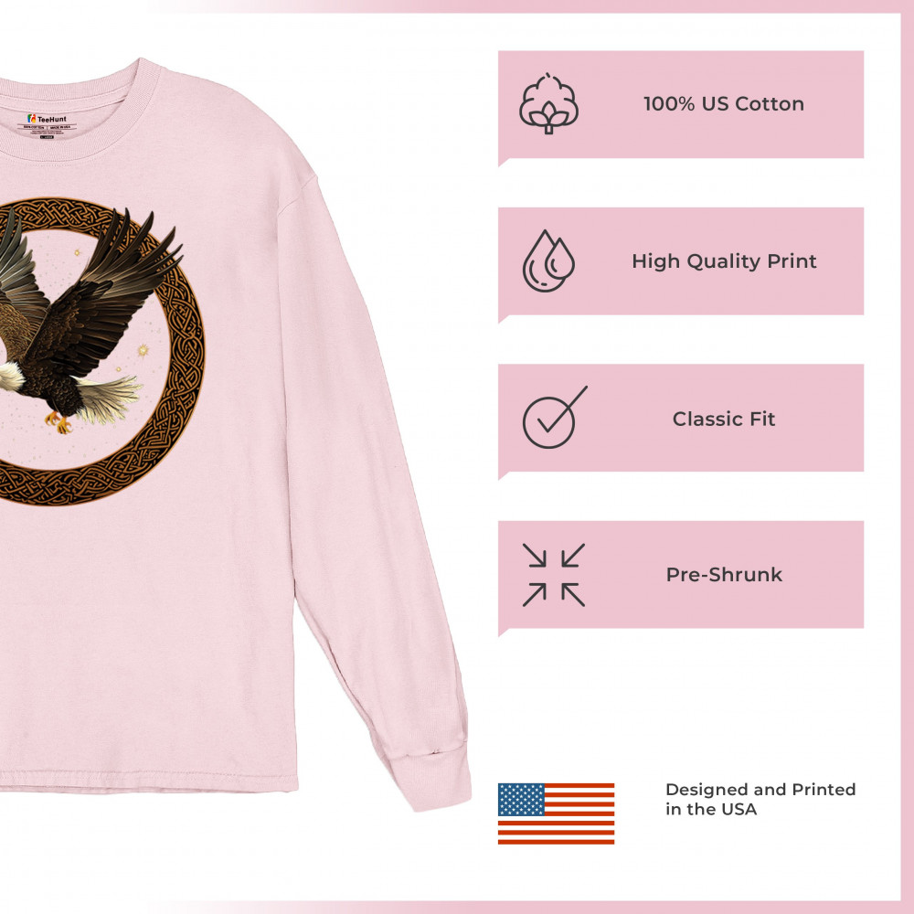 This powerful bald eagle takes flight within a Celtic knotwork circle, radiating strength, independence, and cosmic energy. The glowing stars and celestial background add mystic symbolism, blending nature, tribal design, and spirituality. Perfect for patriots, spiritual seekers, and bird enthusiasts.