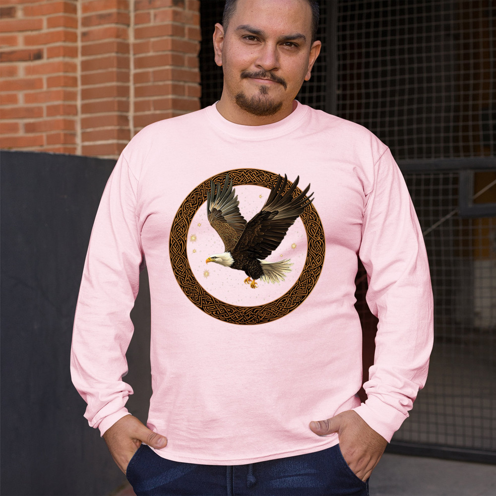 Bald eagle flying in Celtic circle with stars. A bold symbol of freedom, spiritual power, and protection—perfect for patriots and seekers.