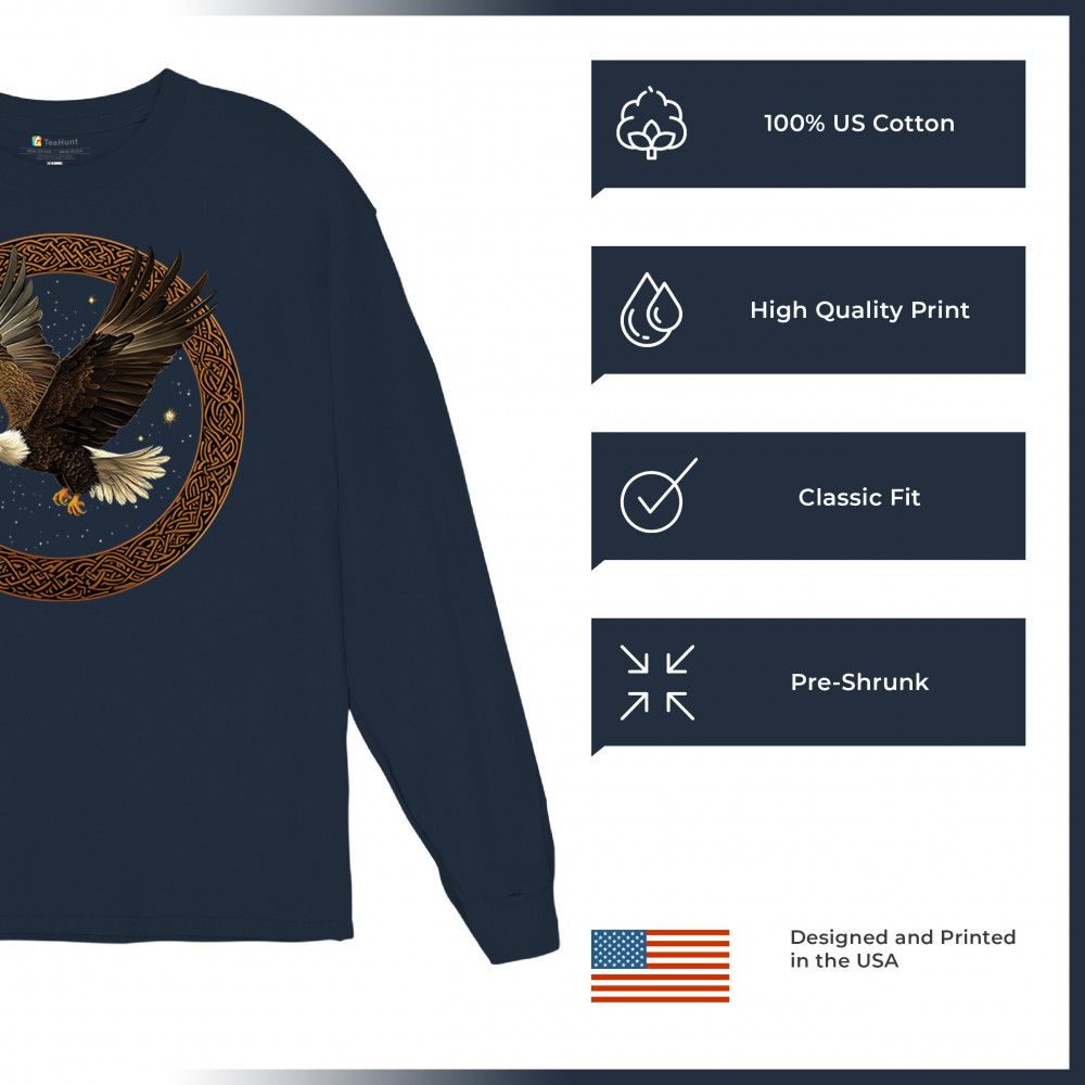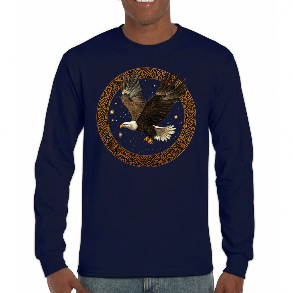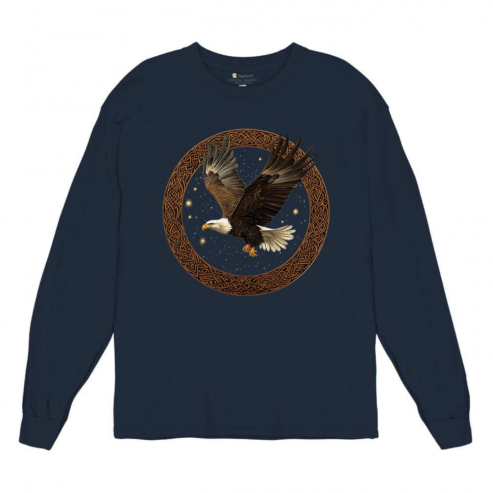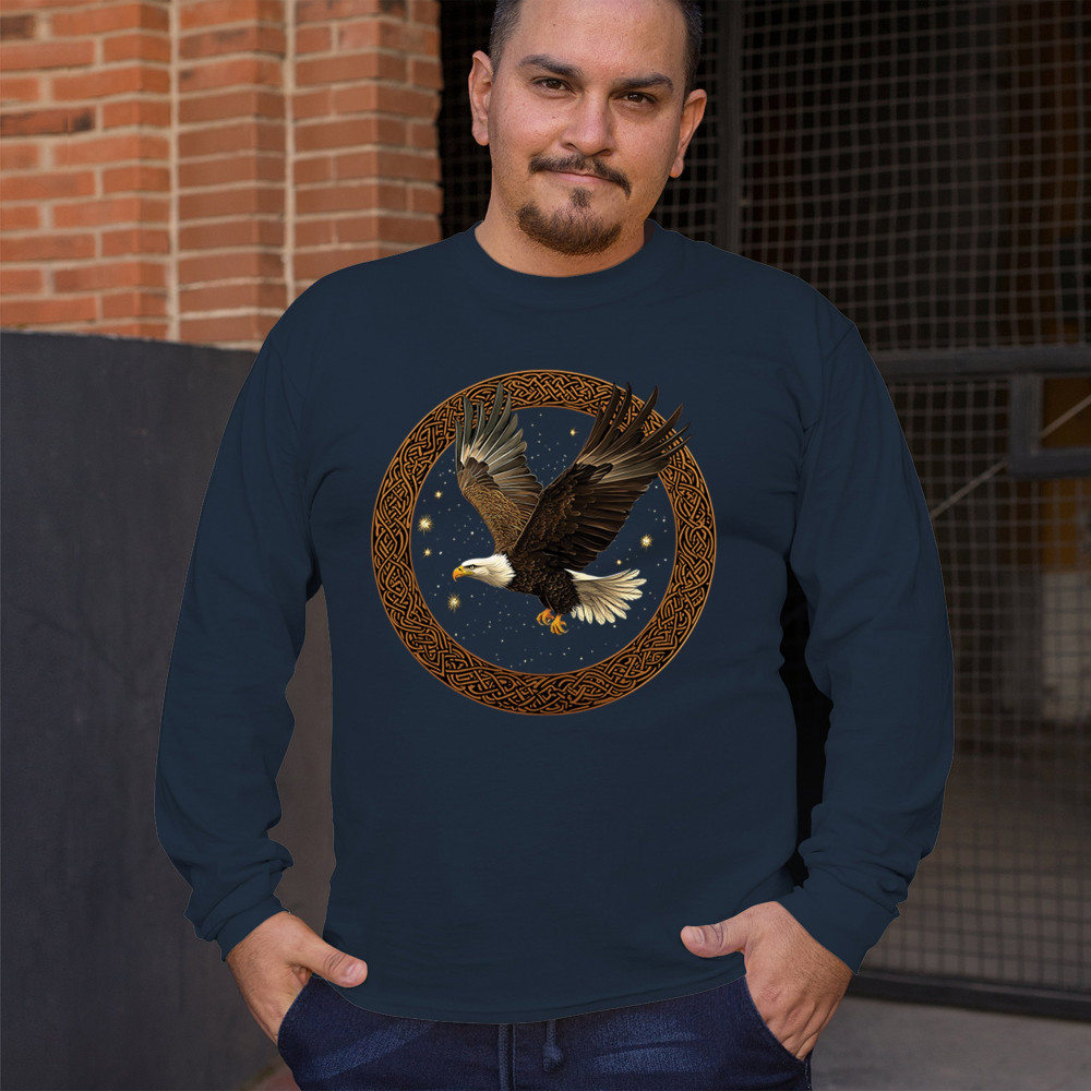 This powerful bald eagle takes flight within a Celtic knotwork circle, radiating strength, independence, and cosmic energy. The glowing stars and celestial background add mystic symbolism, blending nature, tribal design, and spirituality. Perfect for patriots, spiritual seekers, and bird enthusiasts.