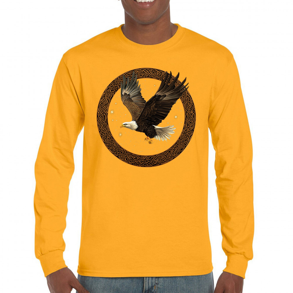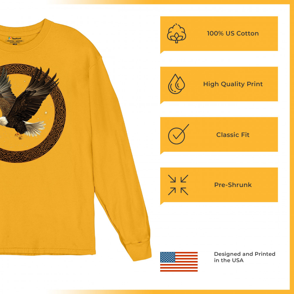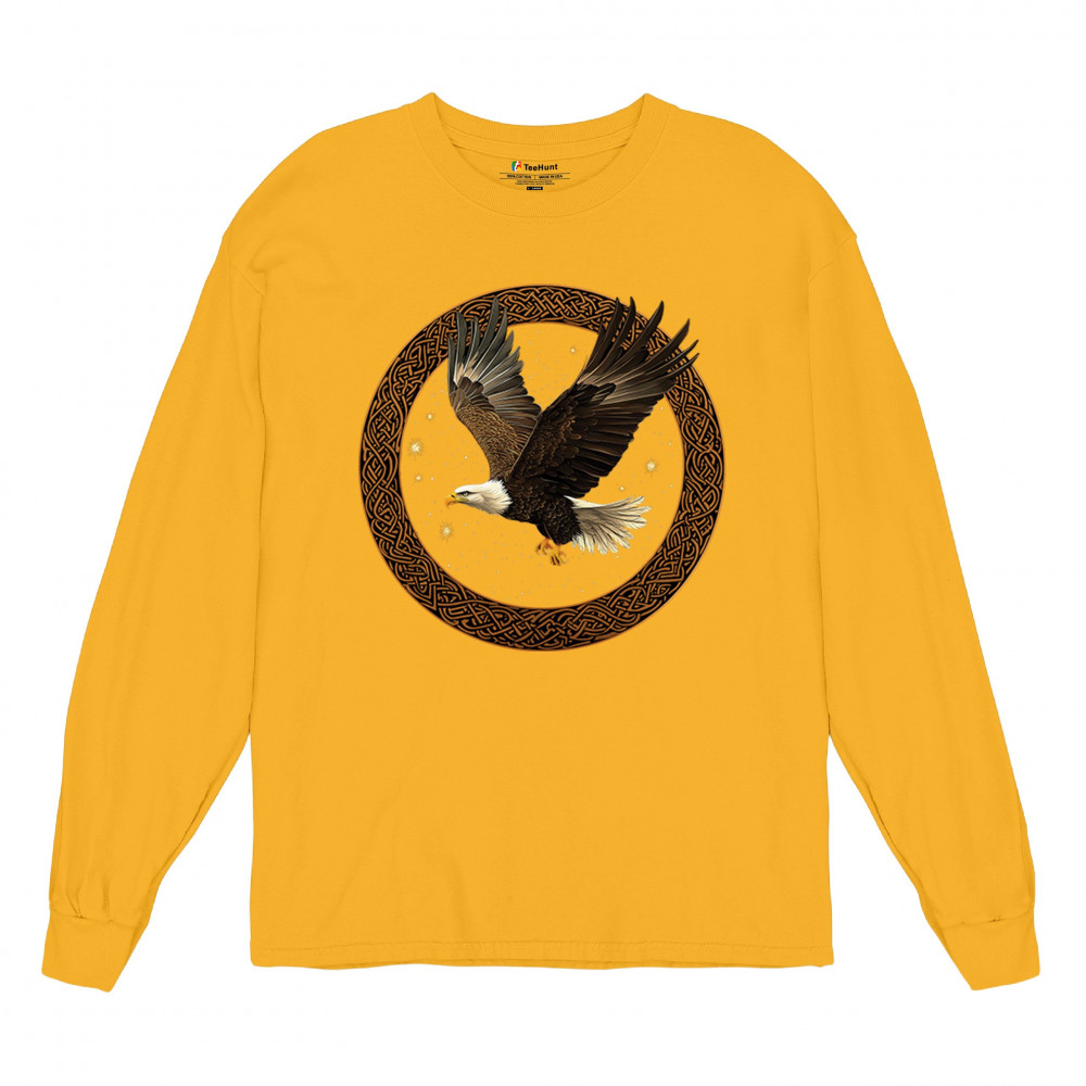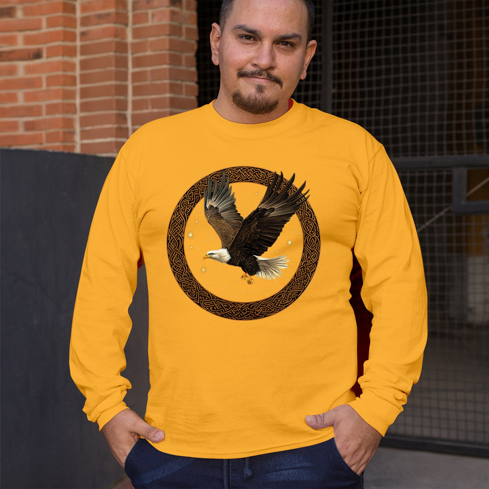 This powerful bald eagle takes flight within a Celtic knotwork circle, radiating strength, independence, and cosmic energy. The glowing stars and celestial background add mystic symbolism, blending nature, tribal design, and spirituality. Perfect for patriots, spiritual seekers, and bird enthusiasts.