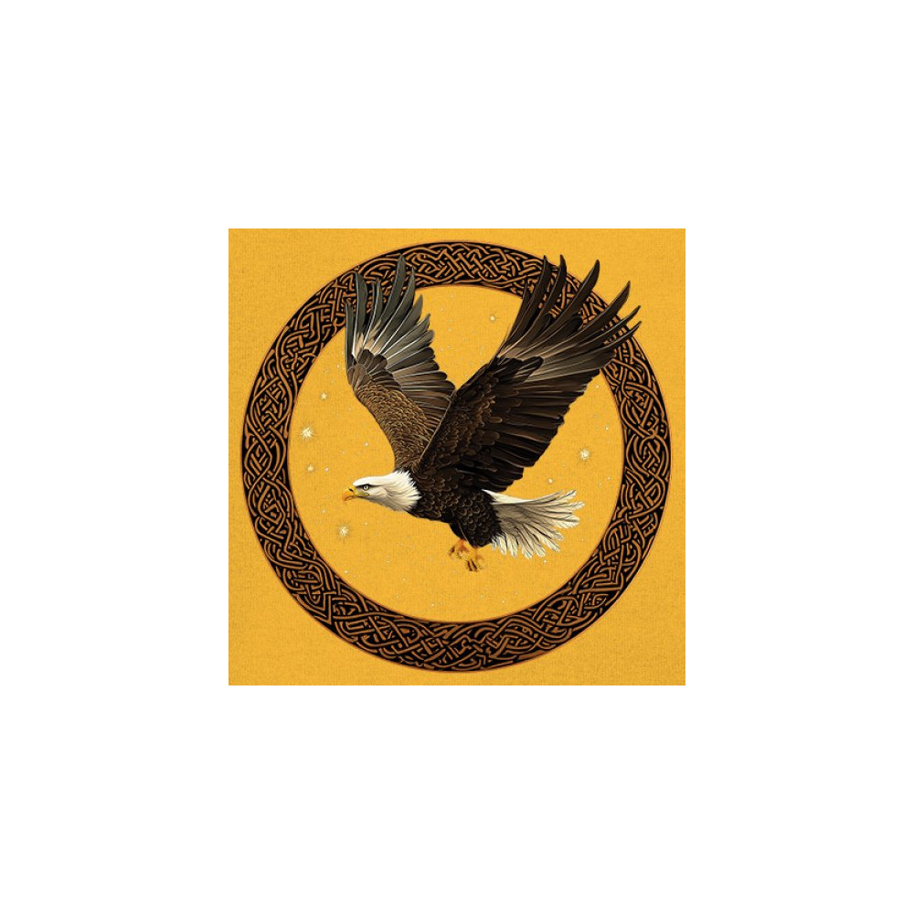 Bald eagle flying in Celtic circle with stars. A bold symbol of freedom, spiritual power, and protection—perfect for patriots and seekers.