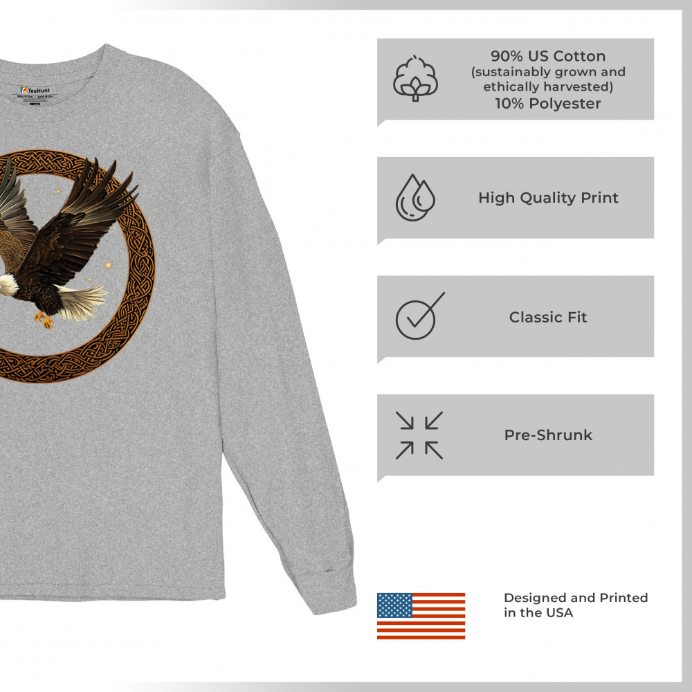 Bald eagle flying in Celtic circle with stars. A bold symbol of freedom, spiritual power, and protection—perfect for patriots and seekers.
