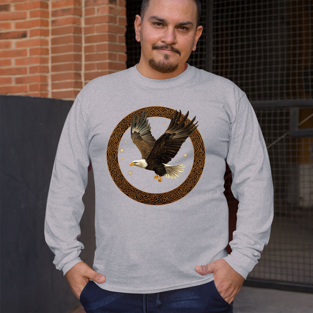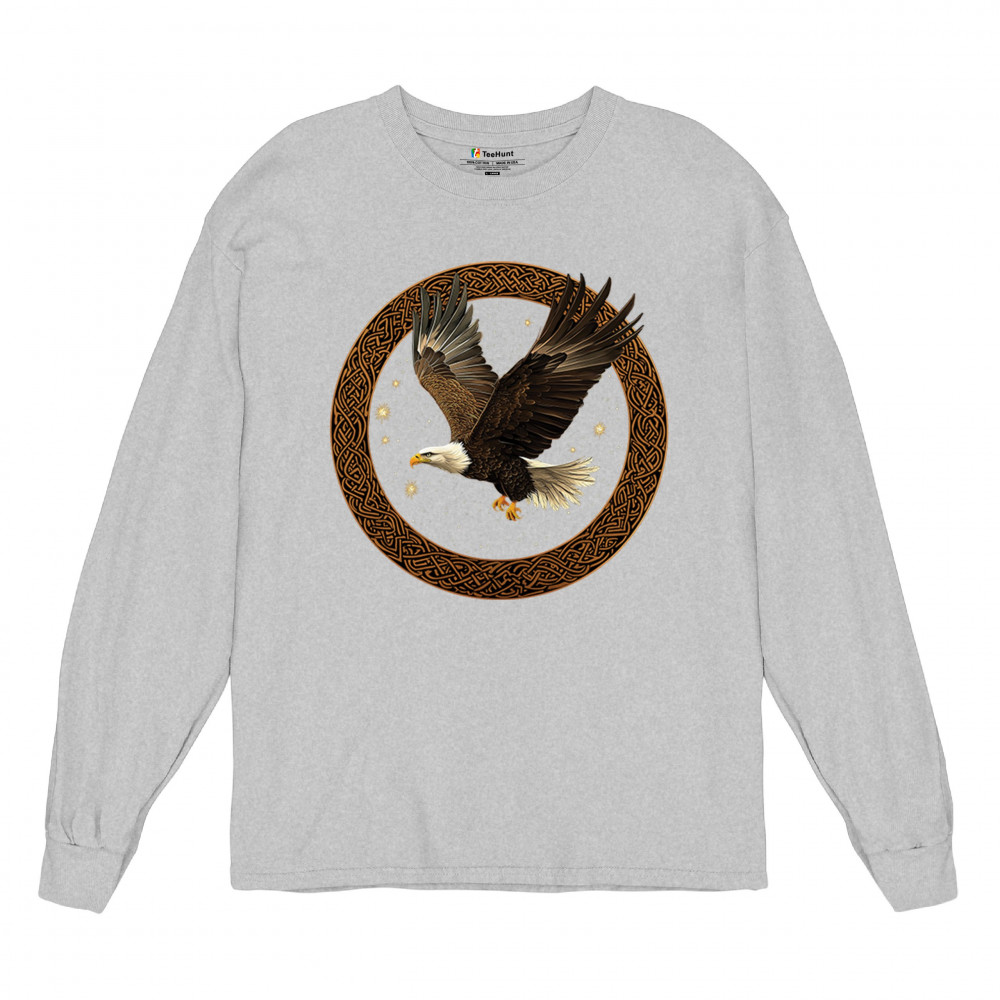 This powerful bald eagle takes flight within a Celtic knotwork circle, radiating strength, independence, and cosmic energy. The glowing stars and celestial background add mystic symbolism, blending nature, tribal design, and spirituality. Perfect for patriots, spiritual seekers, and bird enthusiasts.