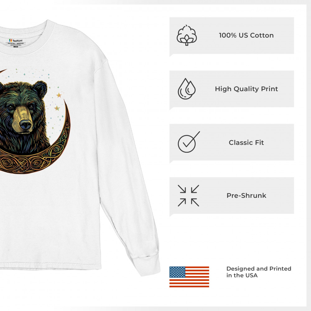 Mystical bear and Celtic moon design—perfect for nature lovers, stargazers, folklore fans, and spiritual seekers into tribal and lunar art.