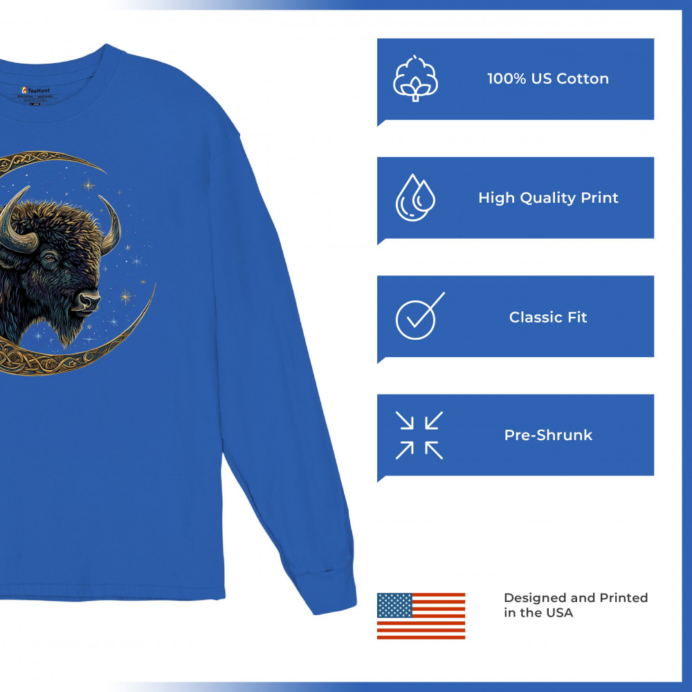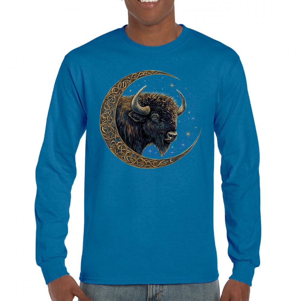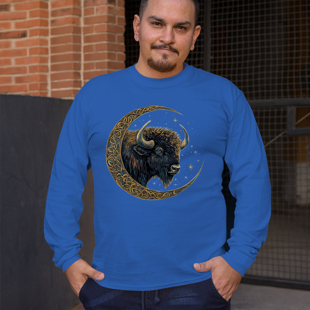 Mystical bison in Celtic moon—perfect for spiritual seekers, art fans, stargazers, and lovers of nature, tribal design, and cosmic energy.