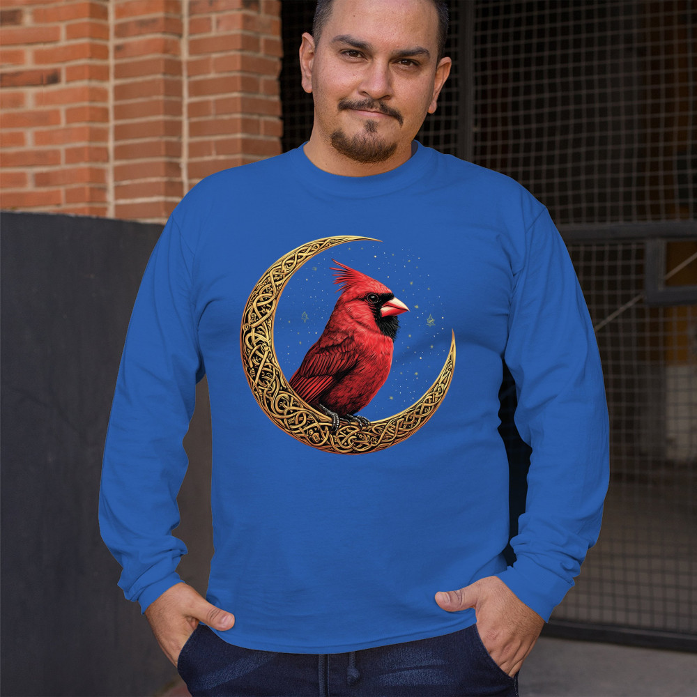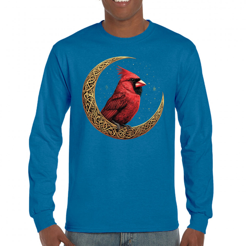 Mystical cardinal with Celtic moon and stars—perfect for nature lovers, spiritual souls, and those honoring love, loss, or remembrance.