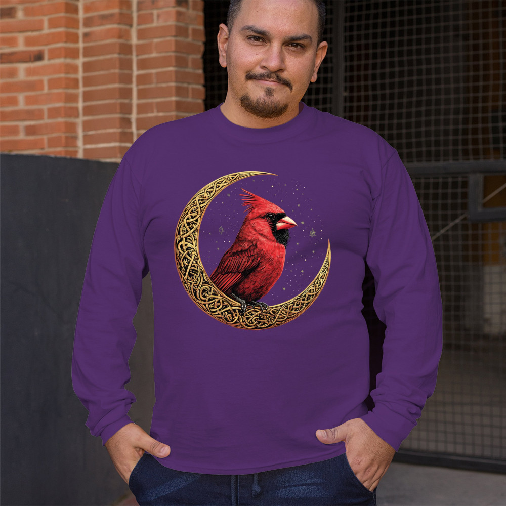 Mystical cardinal with Celtic moon and stars—perfect for nature lovers, spiritual souls, and those honoring love, loss, or remembrance.