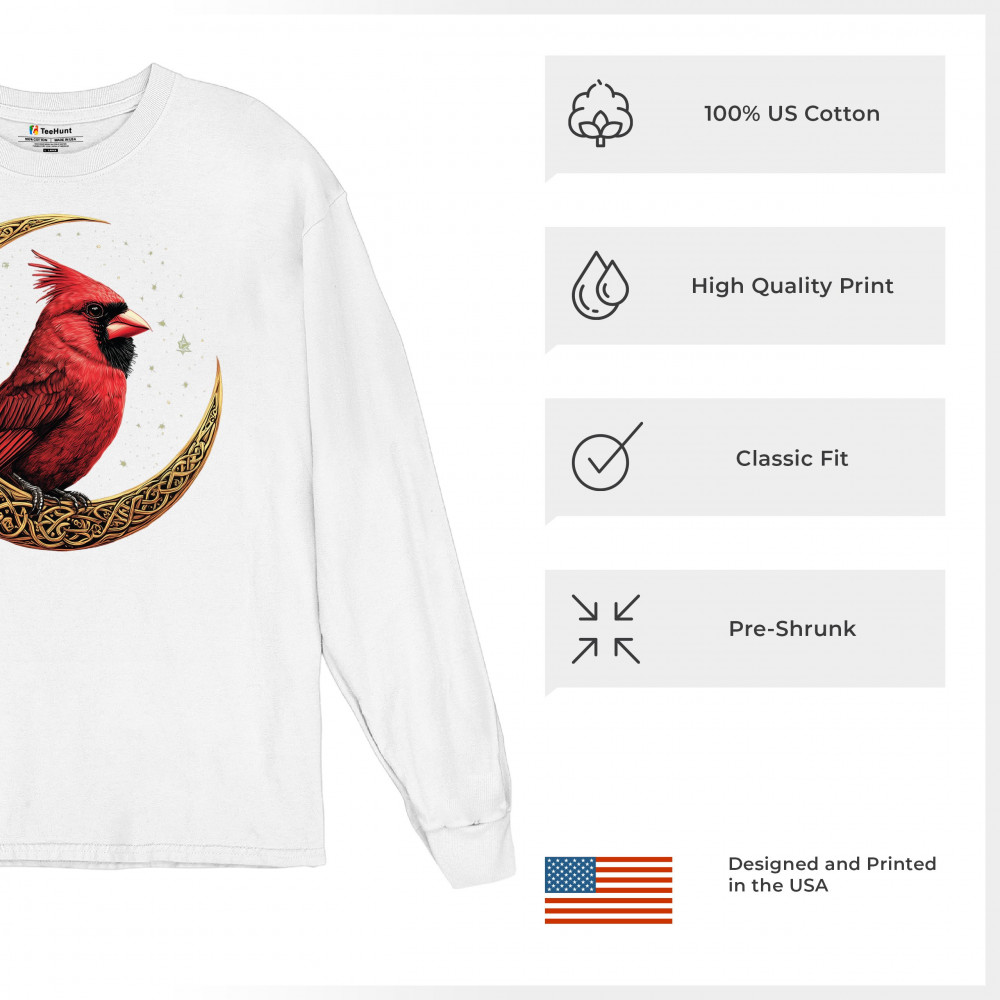 Mystical cardinal with Celtic moon and stars—perfect for nature lovers, spiritual souls, and those honoring love, loss, or remembrance.