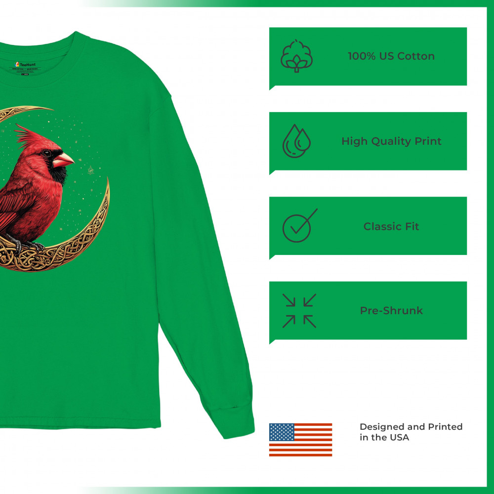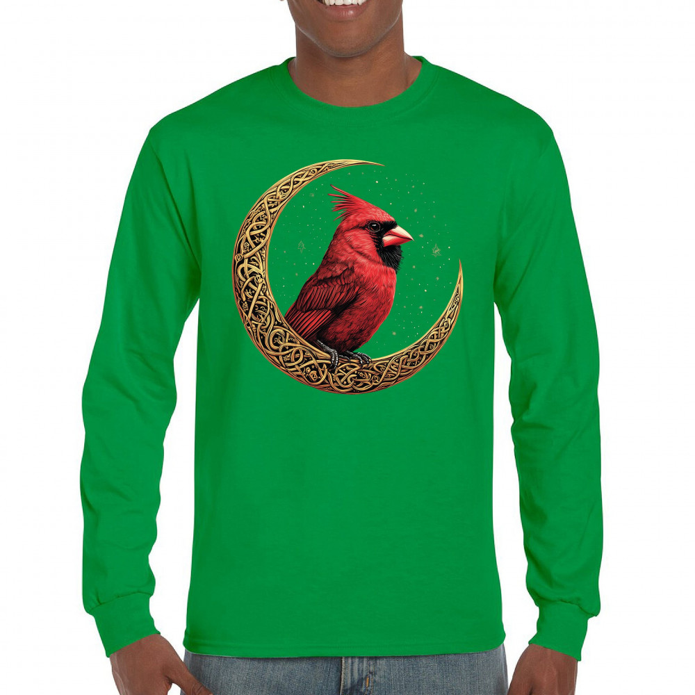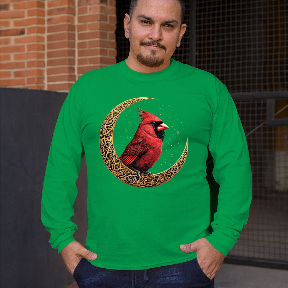 Mystical cardinal with Celtic moon and stars—perfect for nature lovers, spiritual souls, and those honoring love, loss, or remembrance.
