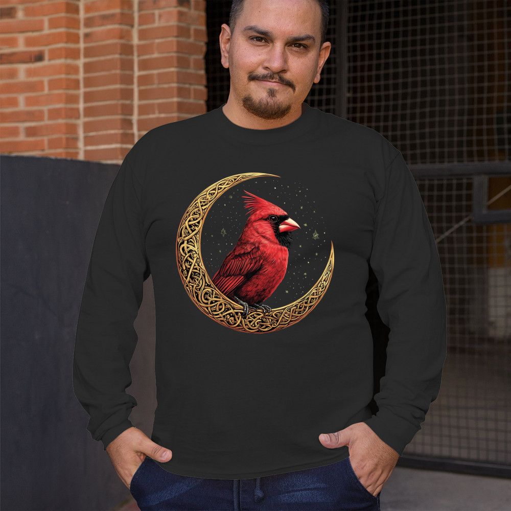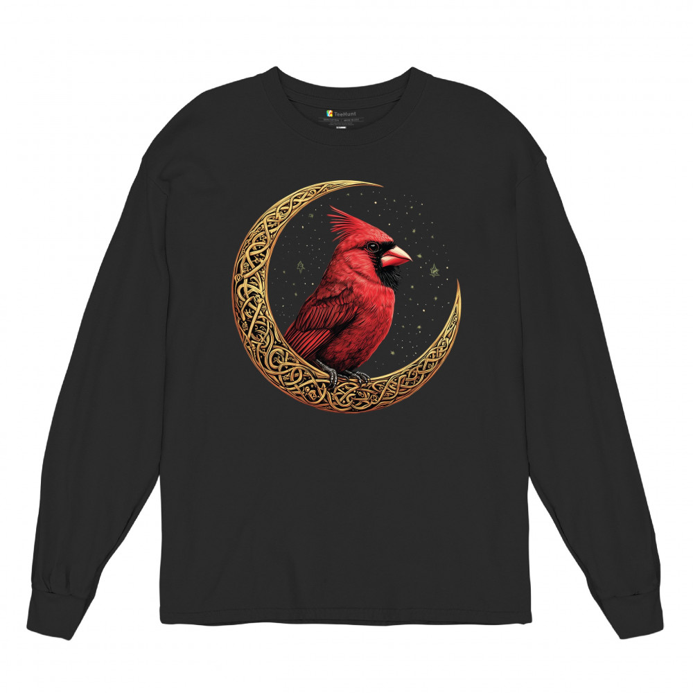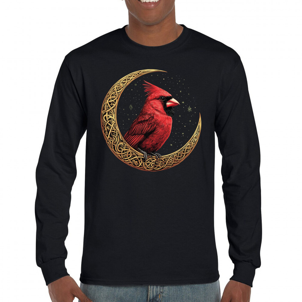 CELTIC MOON CARDINAL long sleeve t-shirt north mystic forest animal wildlife black