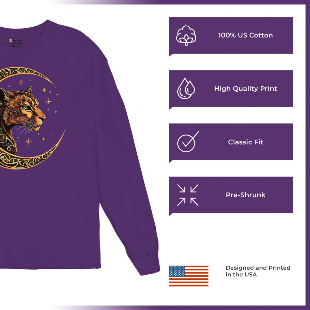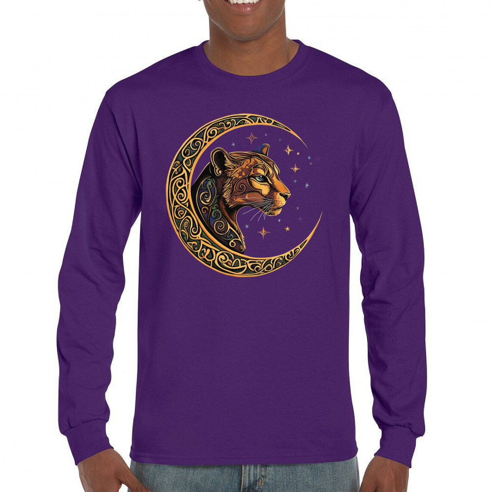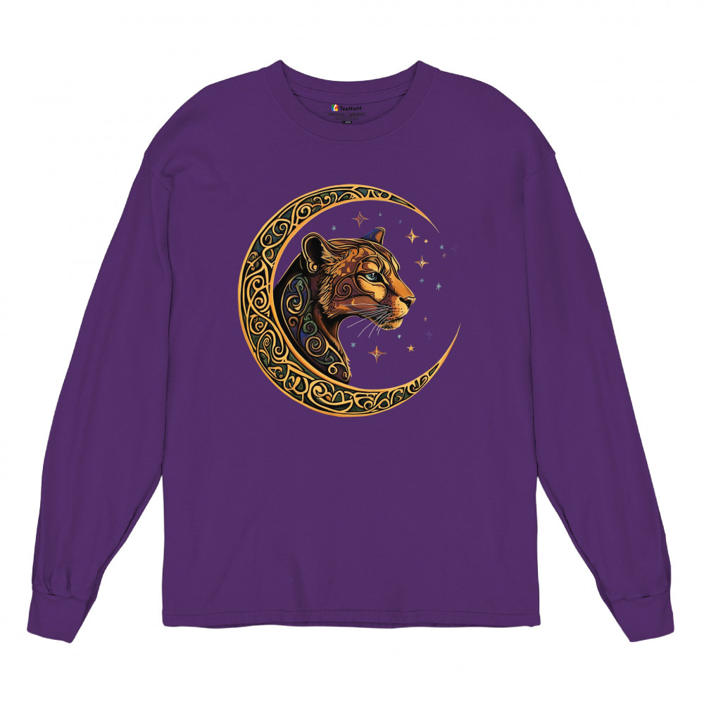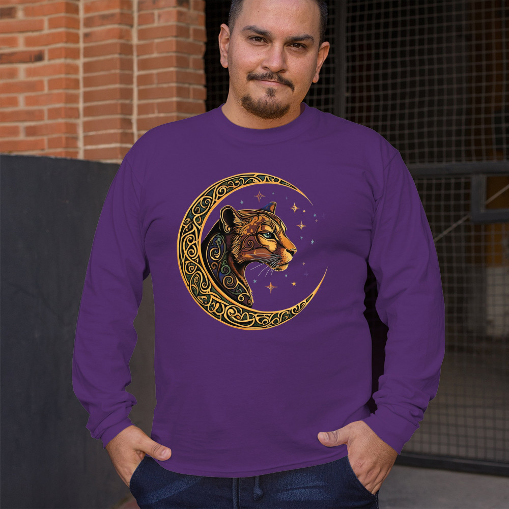 Mystical and elegant, this celestial leopard design merges wild animal strength with spiritual energy. Framed by a golden Celtic crescent moon and set against a starlit sky, it captures themes of nature, intuition, tribal symbolism, fantasy, and feminine power. Ideal for astrology fans, animal lovers, and seekers of cosmic connection.